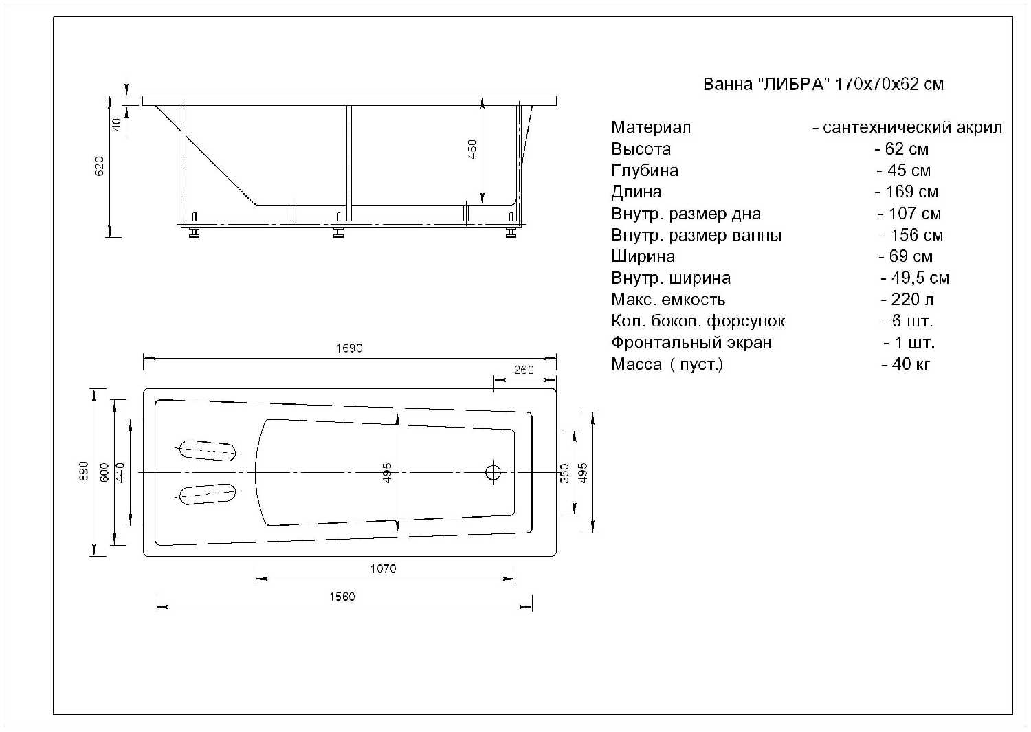 Обзоры и руководства на АКВАТЕК Ванна Aquatek Либра 170x70 LIB170-0000006 акрил