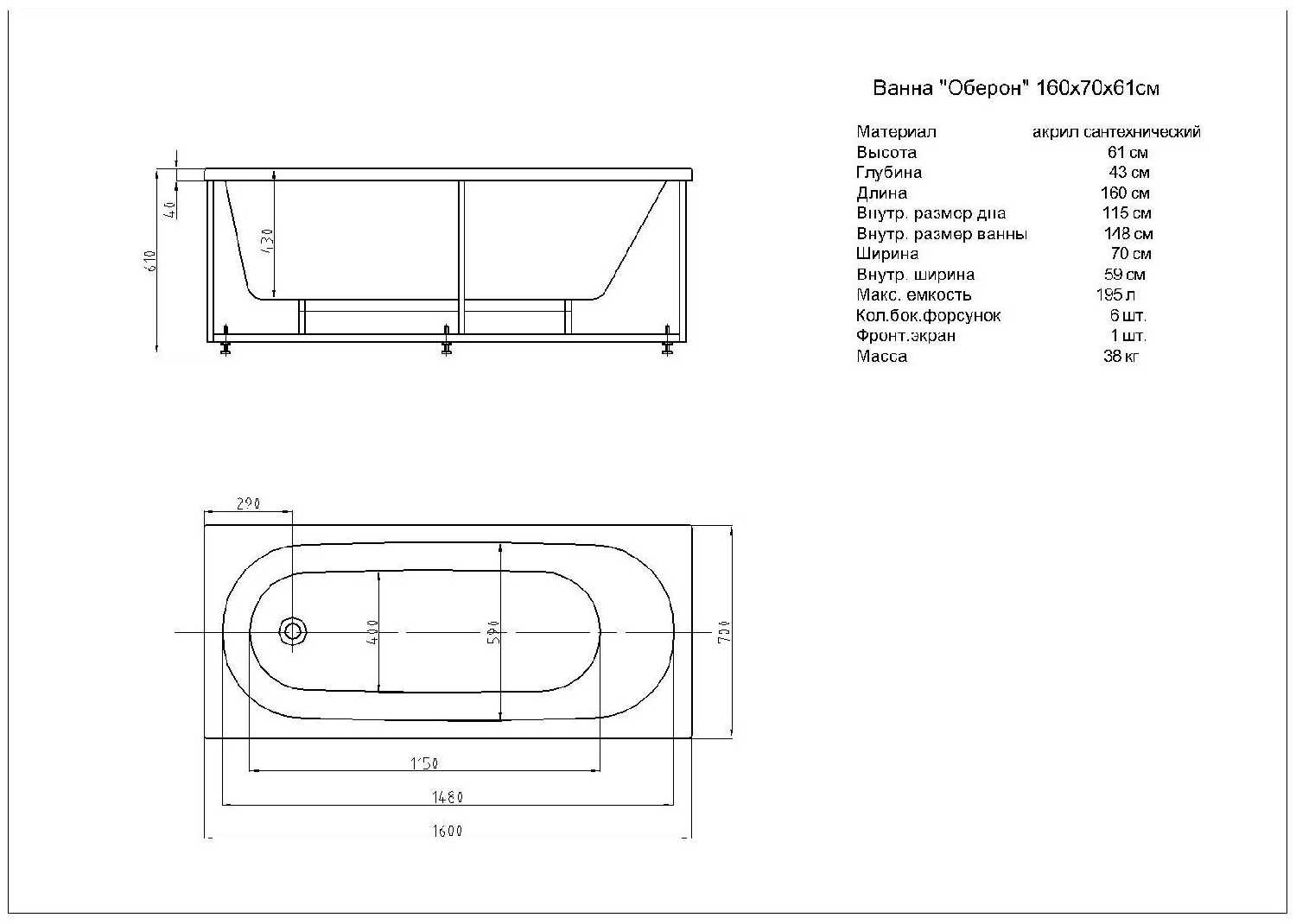 2 отзывов пользователей o АКВАТЕК Ванна Aquatek Оберон 160x70 OBR160-0000039 акрил