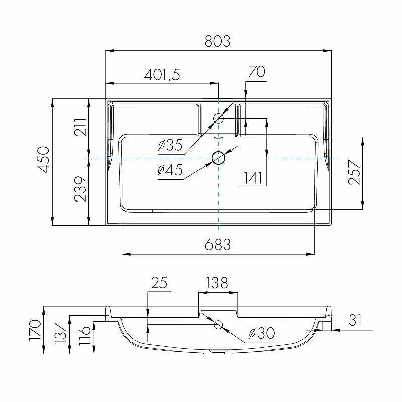 Число размеченных отверстий под смеситель : | отсутствуют |