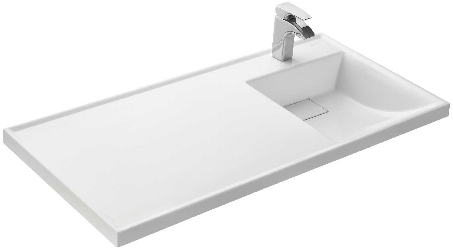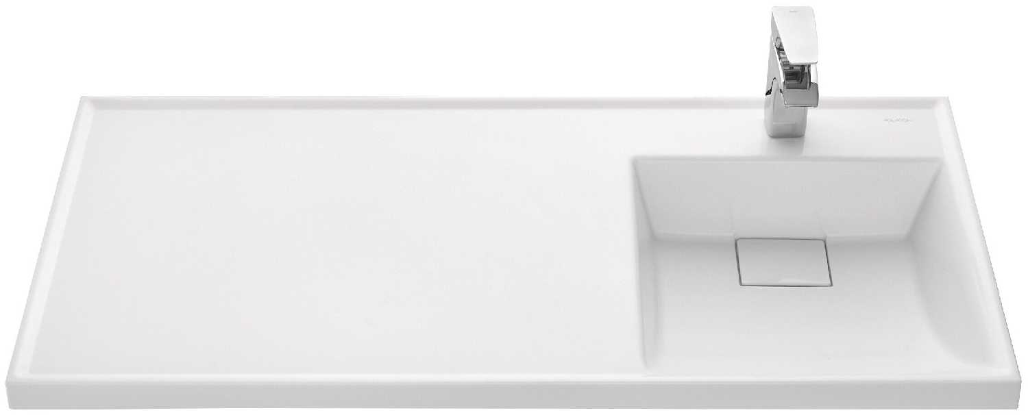 Отличная раковина 2 в 1, на столешницу вода при пользовании сантехникой не попадает, так что можно смело оставлять на ней различные вещи. Искусственный камень не уступает...