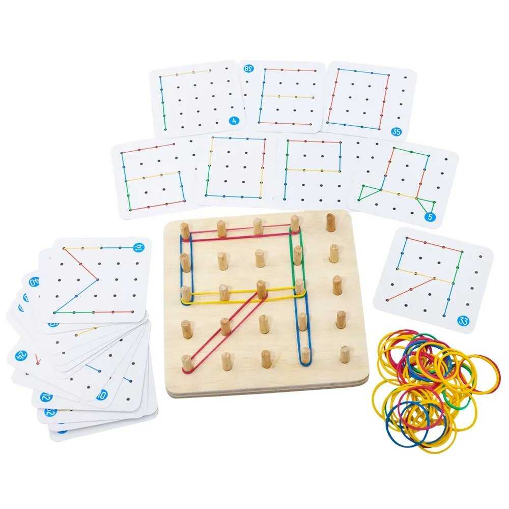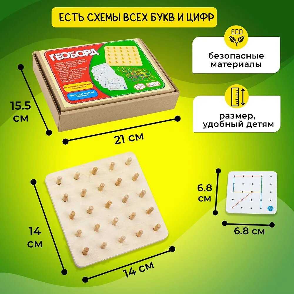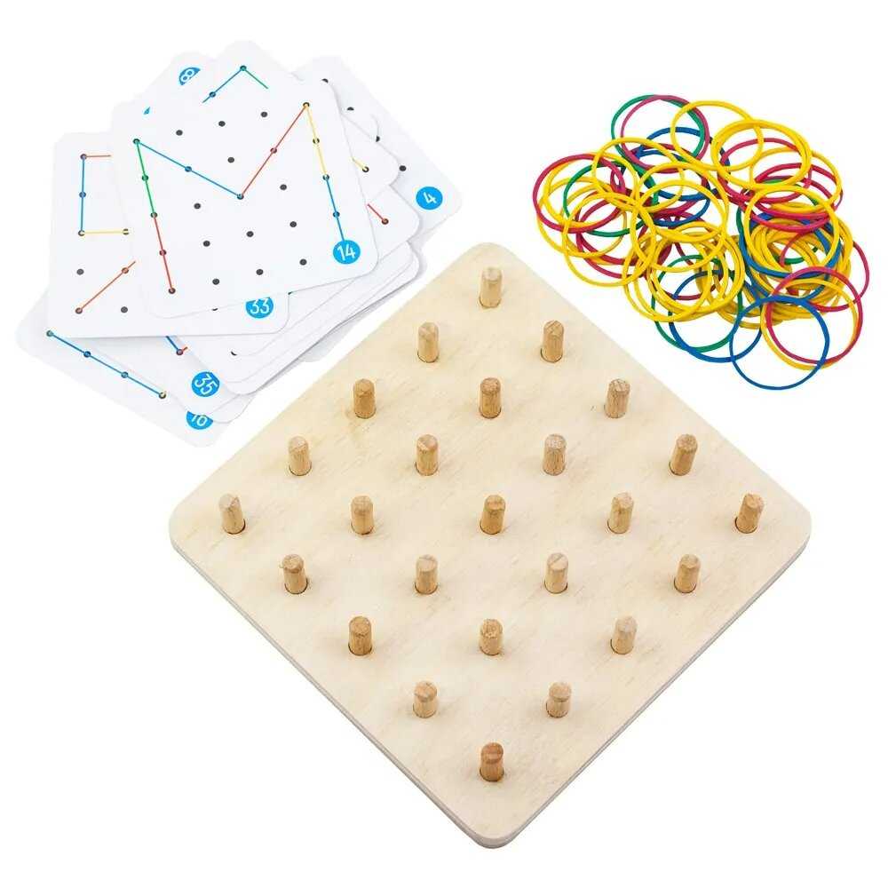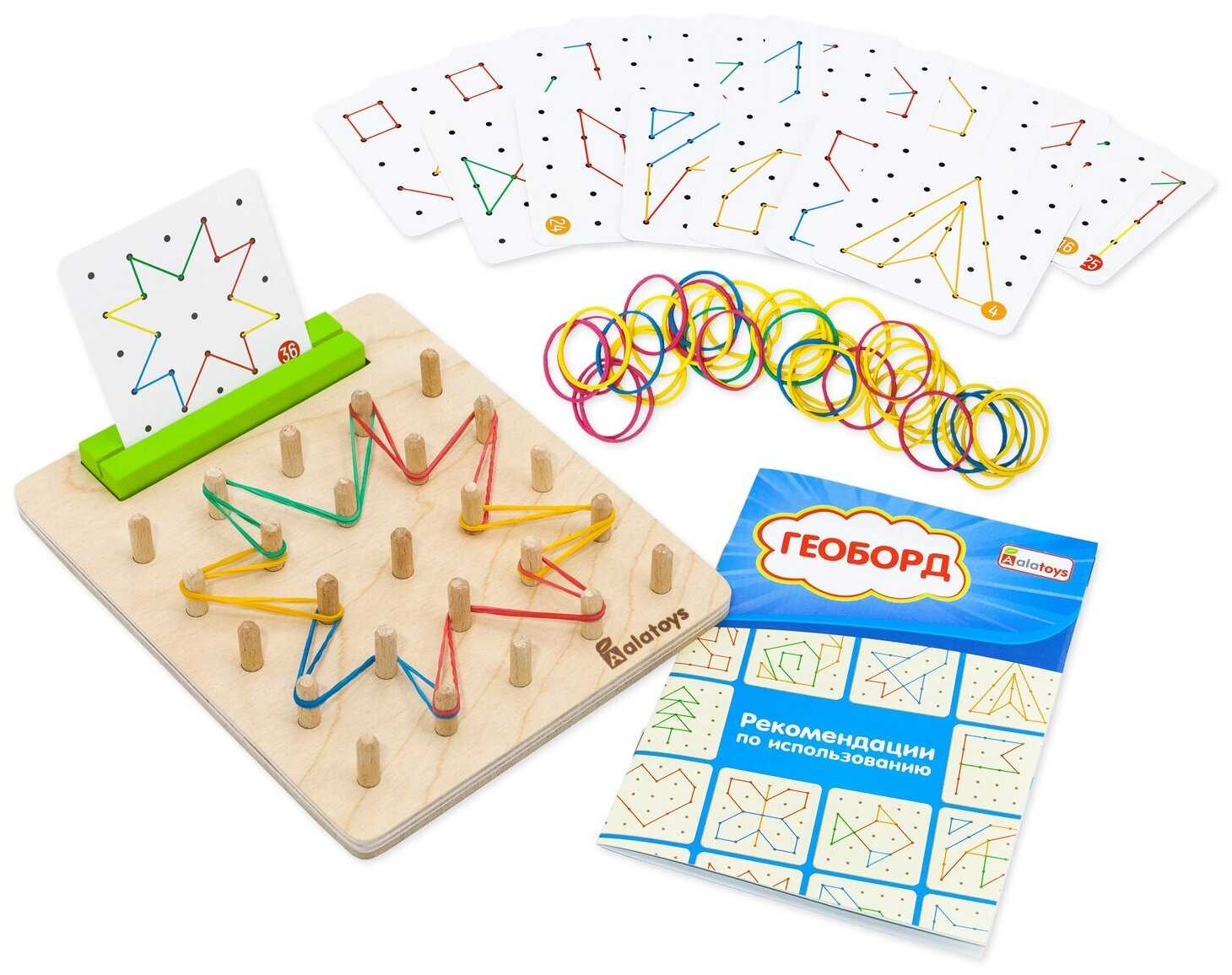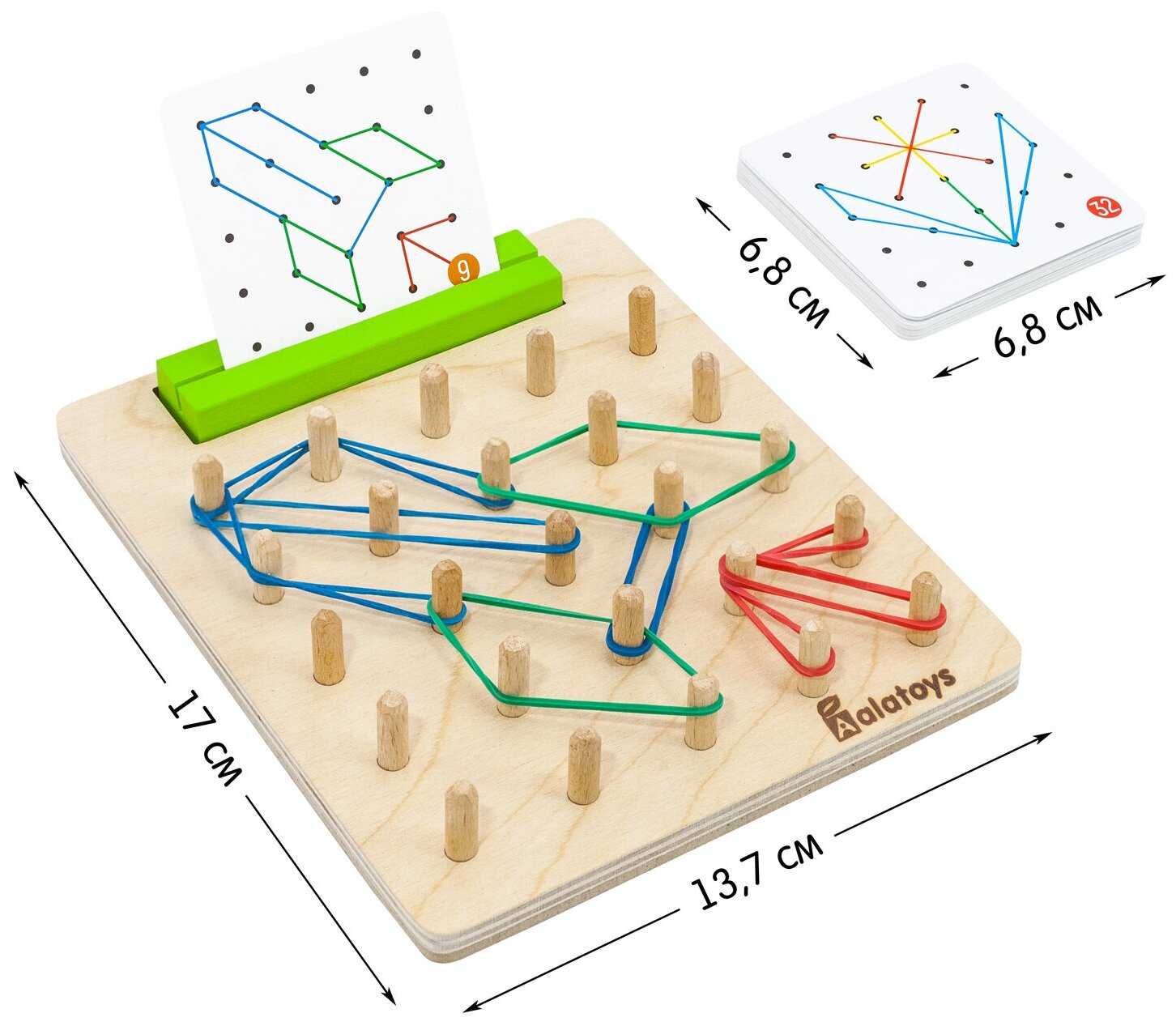 Дополнительная информация : | Настольная игра аредставляет собой деревянную основу со штырьками для построения рисунков на плоскости путем нанизывания резинок на штырьки. |
