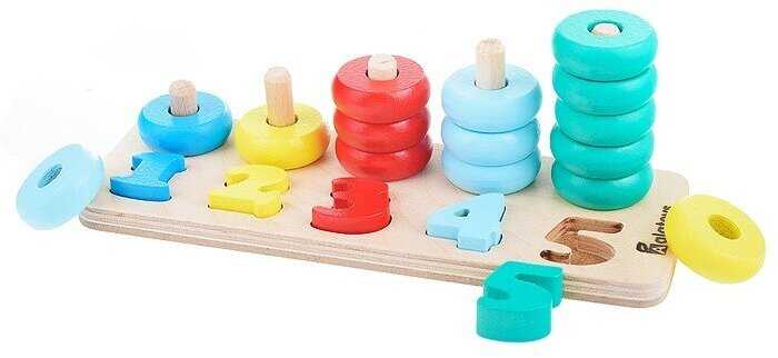Комплектация : | деревянное основание, 15 колечек разного цвета |