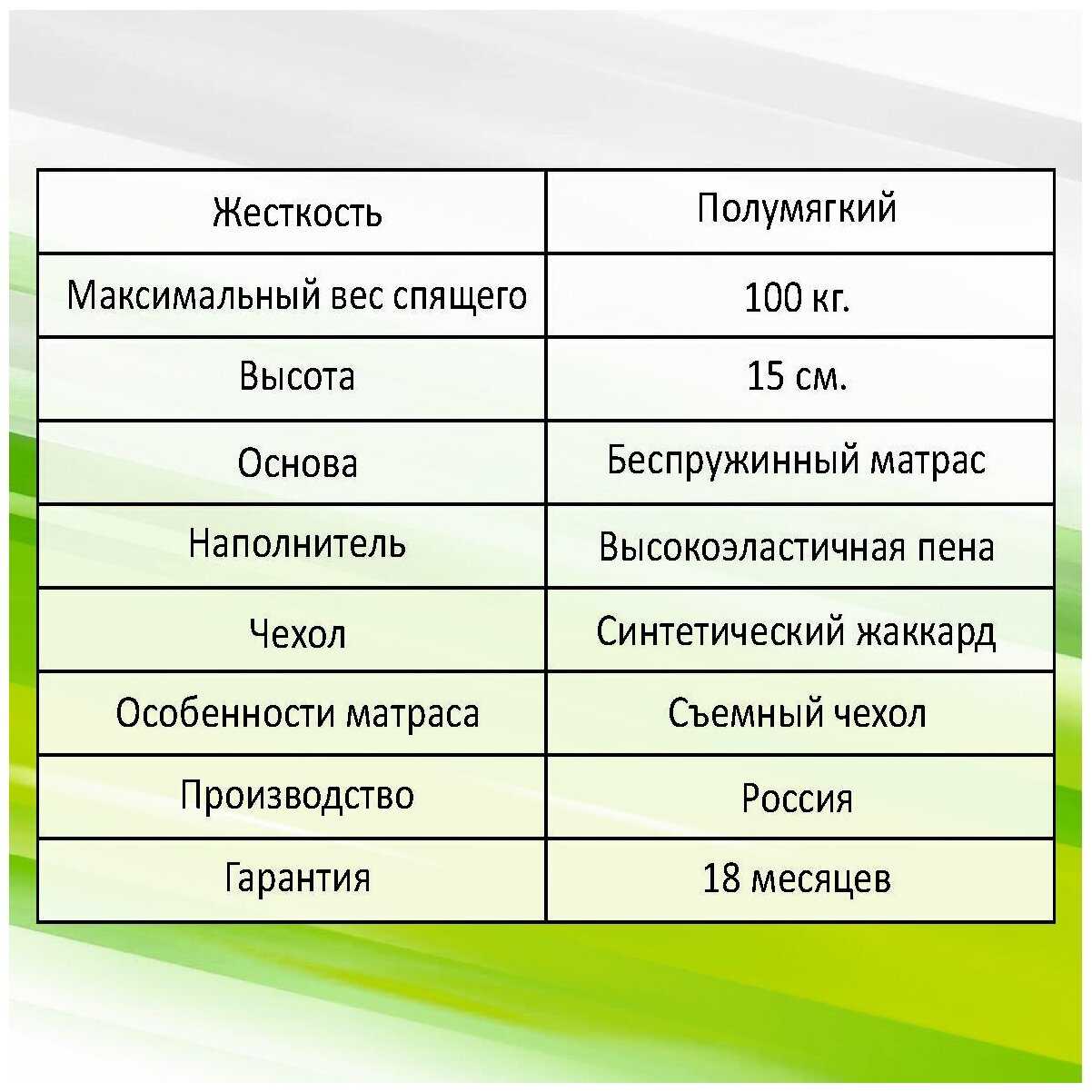 Характеристи ALBERO BASIC ROLL беспружинный 15 см