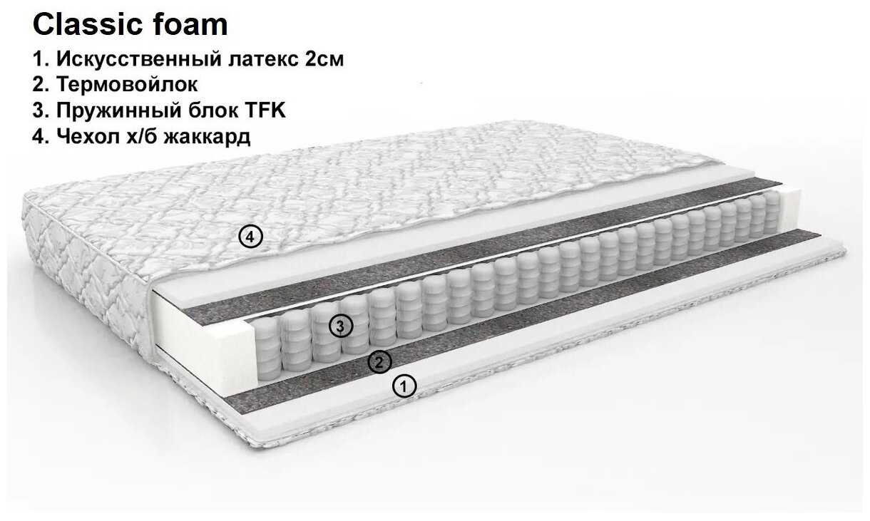 - наполнитель: комбинированный (высокоэласт. пена 2 см + блок независимых пружин TFK + высокоэласт. пена 2 см)