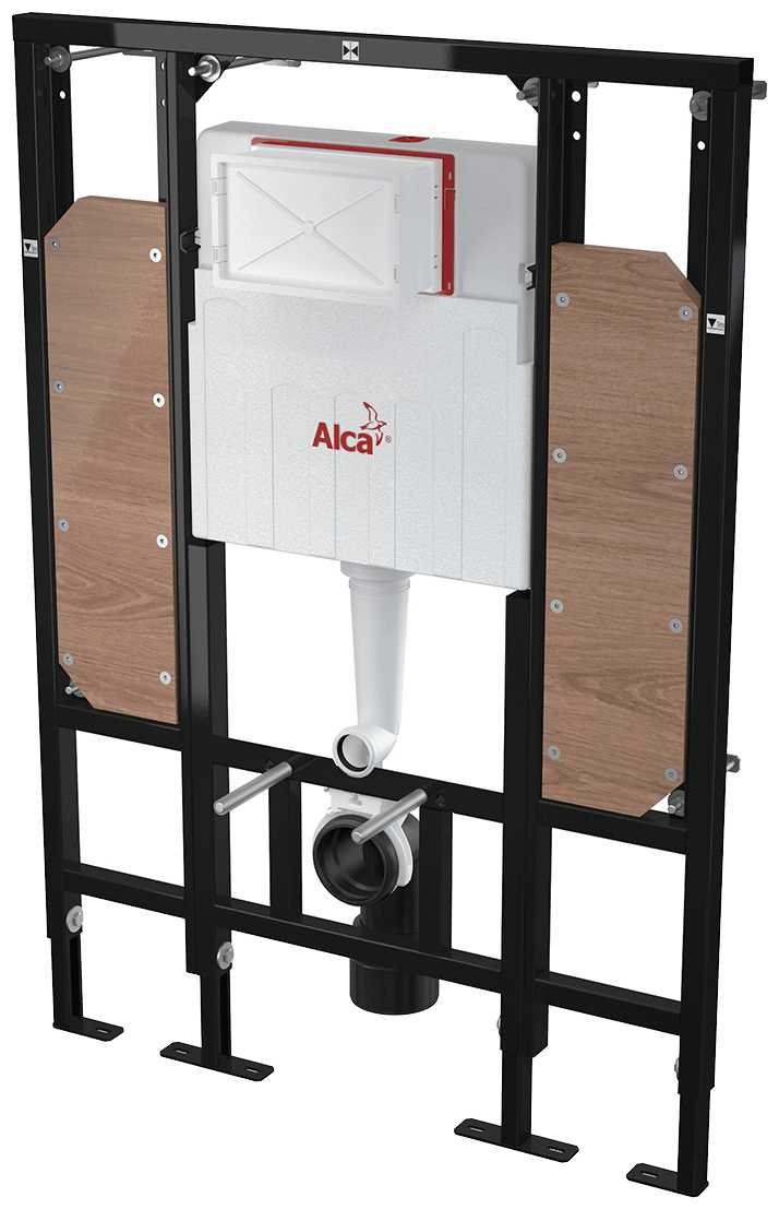 | Дополнительная информация : | c дозатором таблеток для унитаза, рама для подвесного унитаза с пластинами предназначенными для монтажа поддерживающих поручней, подходит для установки пневматического или сенсорного смыва, совместима со всеми кнопками управления AlcaPlast, подвод воды сзади/сверху посередине |