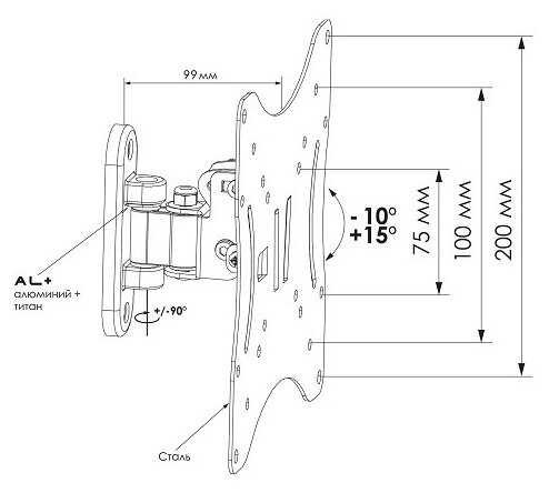 | Регулировка : | наклон, наклон и поворот, поворот |