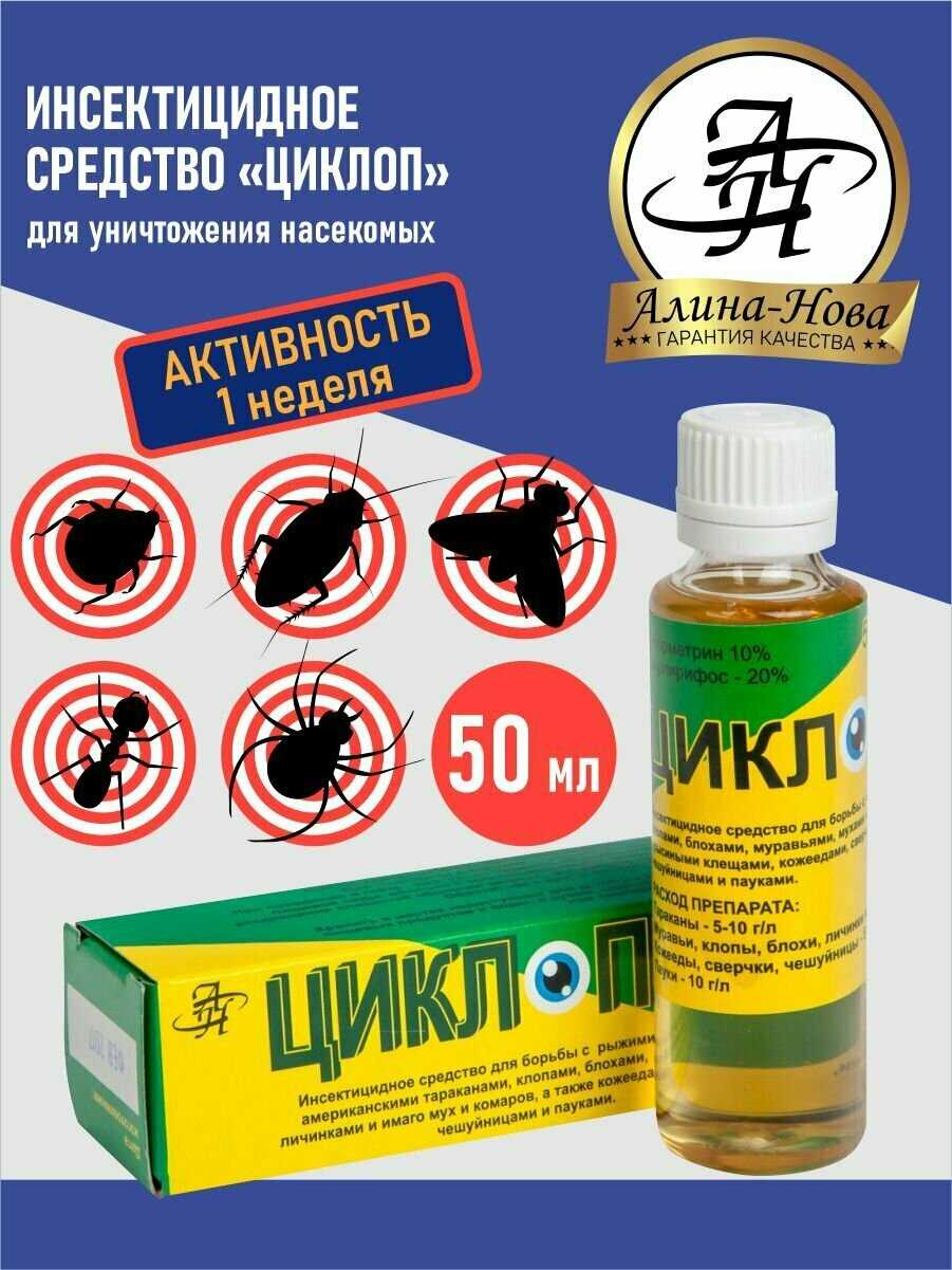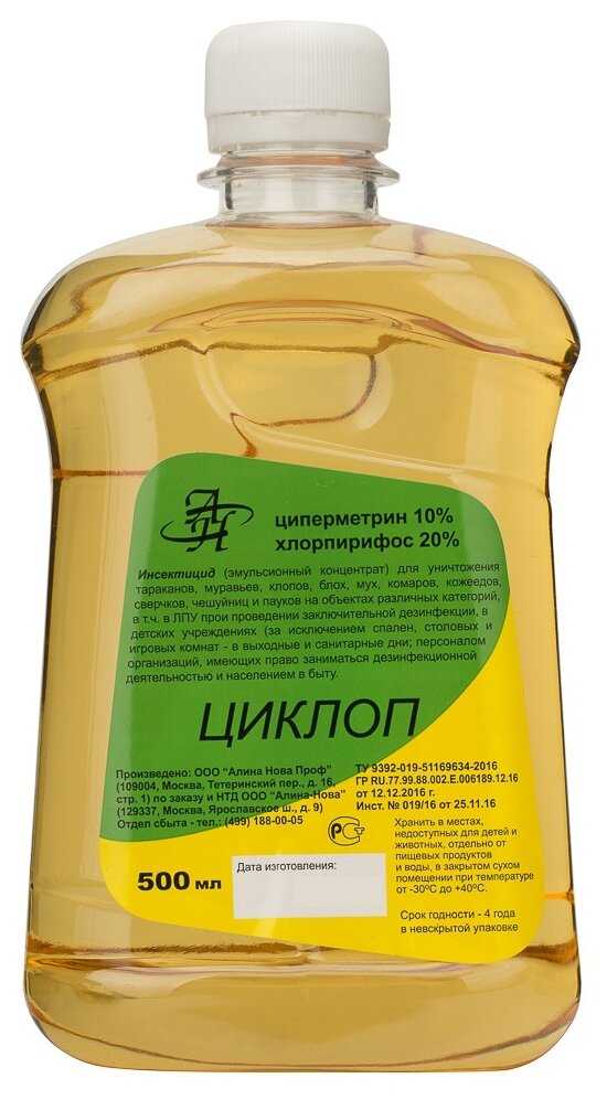 | Подробная комплектация : | Средство от тараканов, средство от клопов, от блох Циклоп 500 мл - 1 штука |
