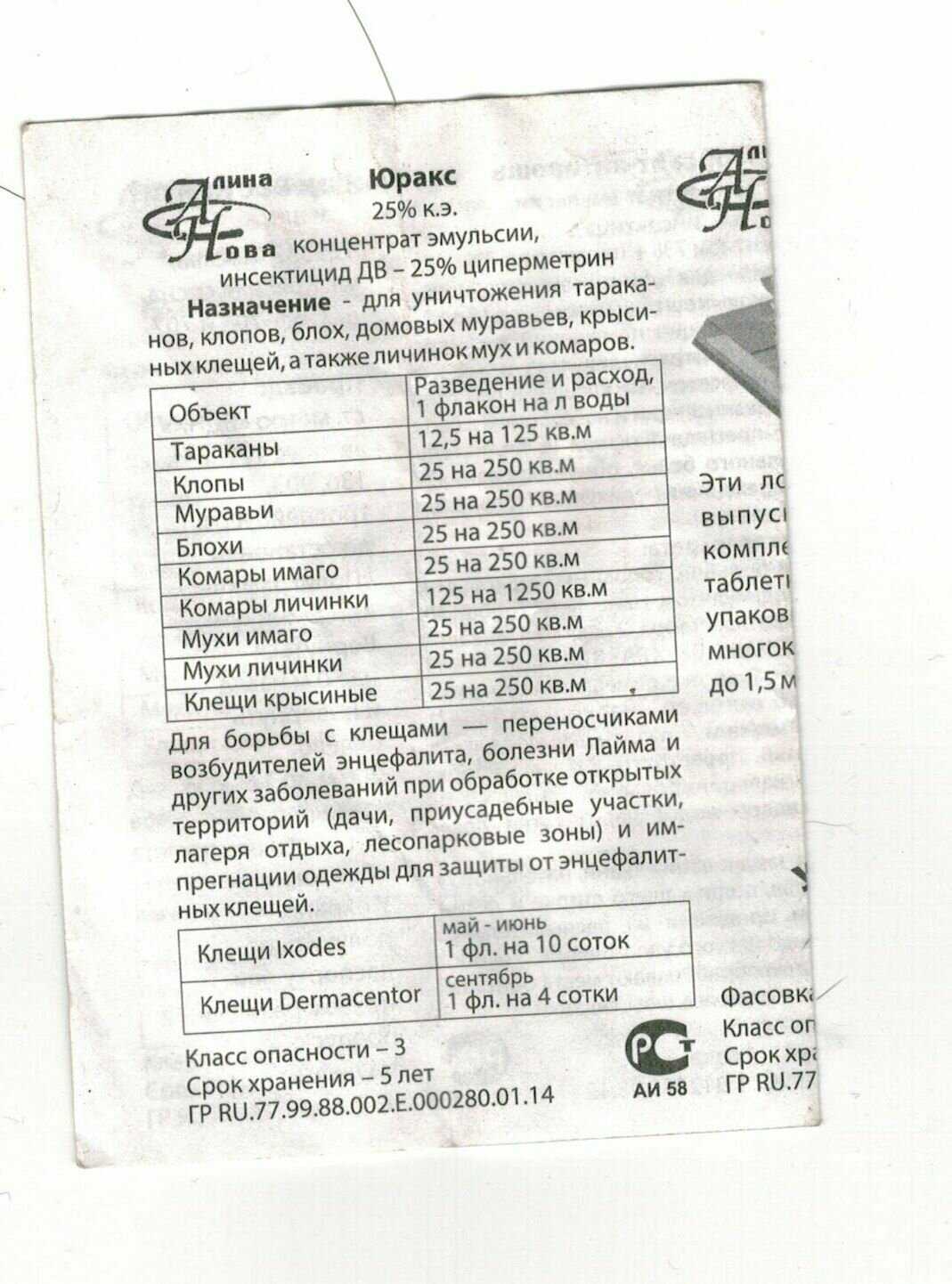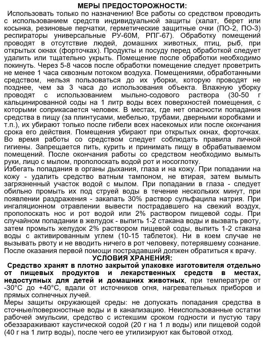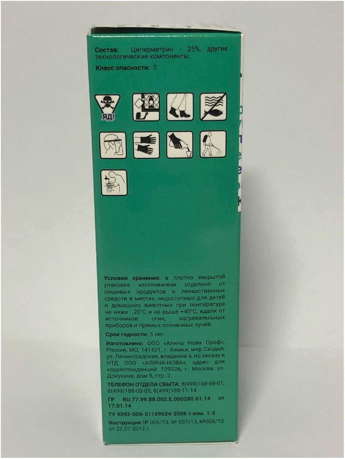 | Состав : | Циперметрин 25%, Антиоксидант, Разбавитель, Эмульгатор |