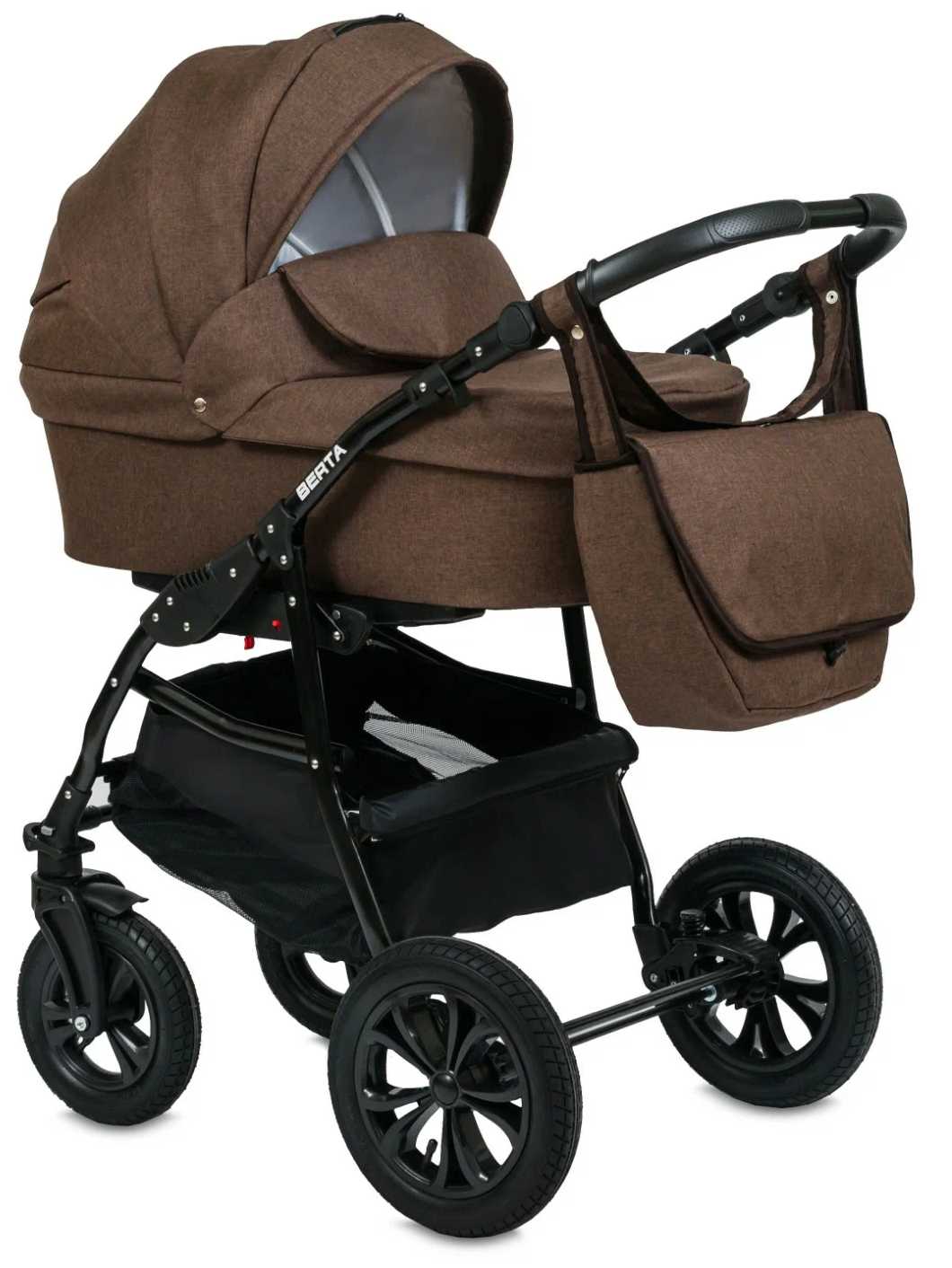 - + Хорошая коляска, в целом понравилась, большие маневренные колеса, управление лёгкое (зимой конечно не очень), ткань достаточно плотная, большая вместительная сумка для мамочек, также в комплекте дождевик и маскитная сетка, большая и прочная корзина для покупок.