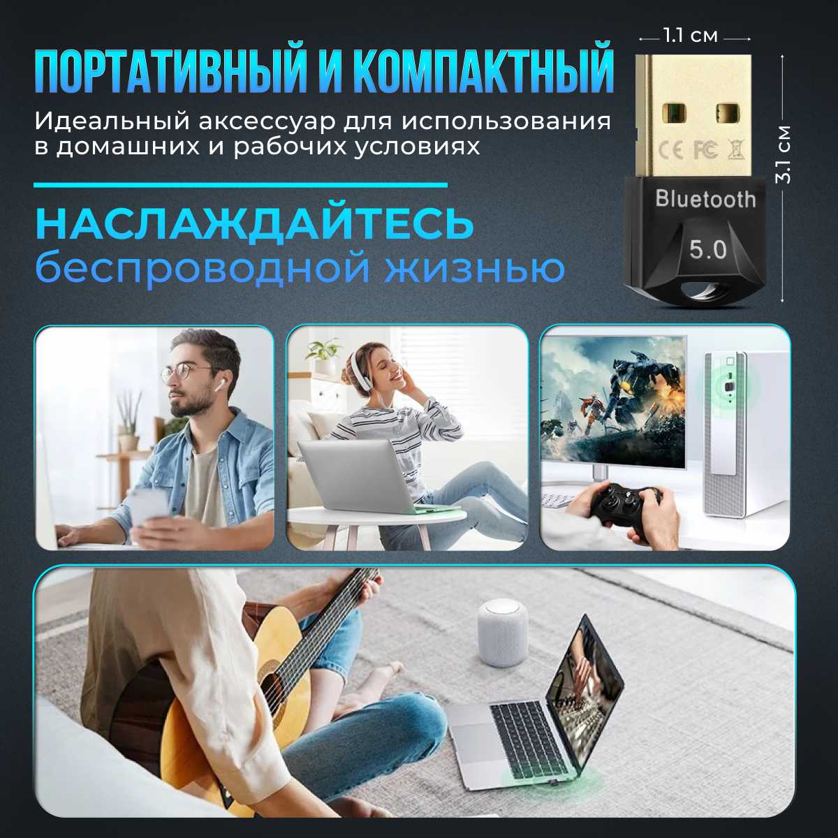 - Мгновенное распознавание беспроводных устройств (наушники, геймпады) после подключения к USB-порту.