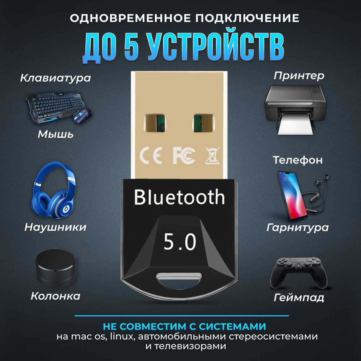 - Мгновенное распознавание беспроводных устройств (наушники, геймпады) после подключения к USB-порту.