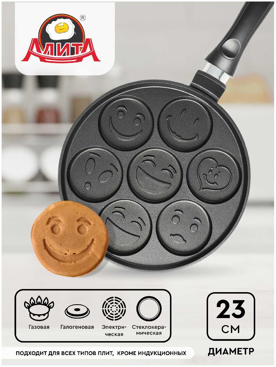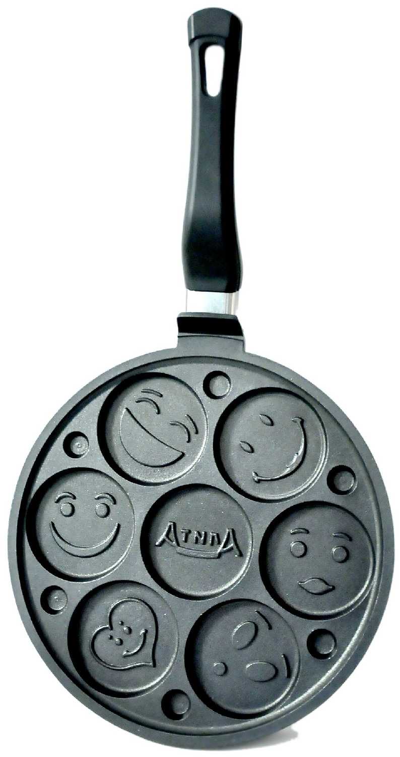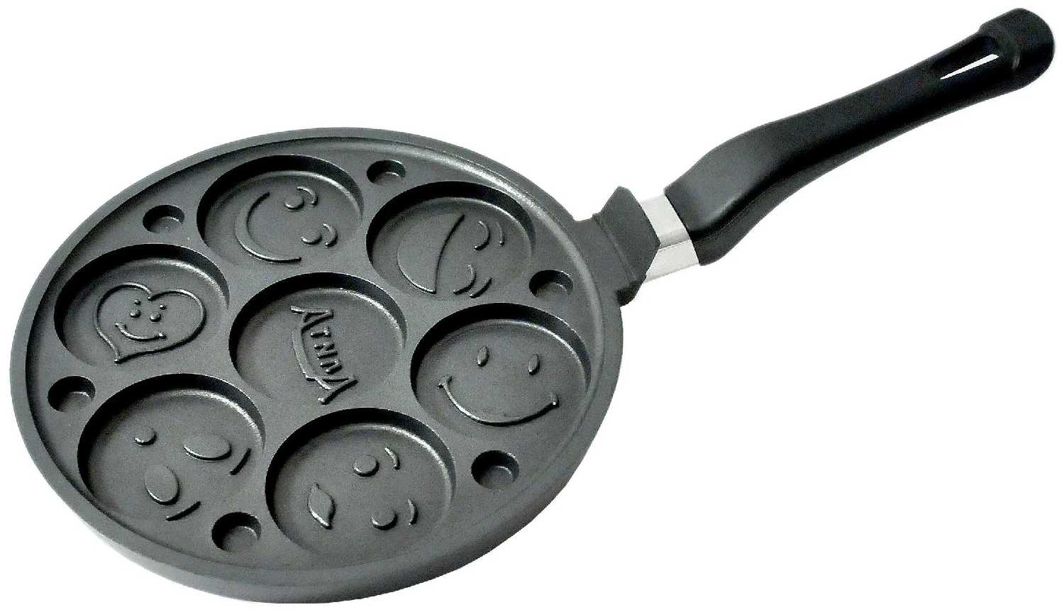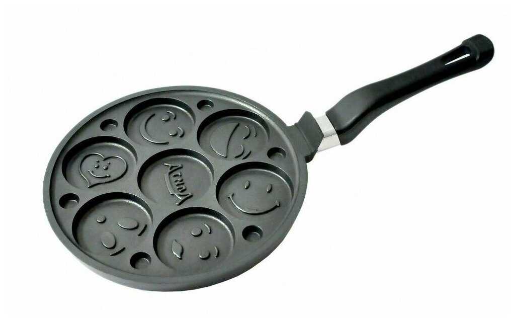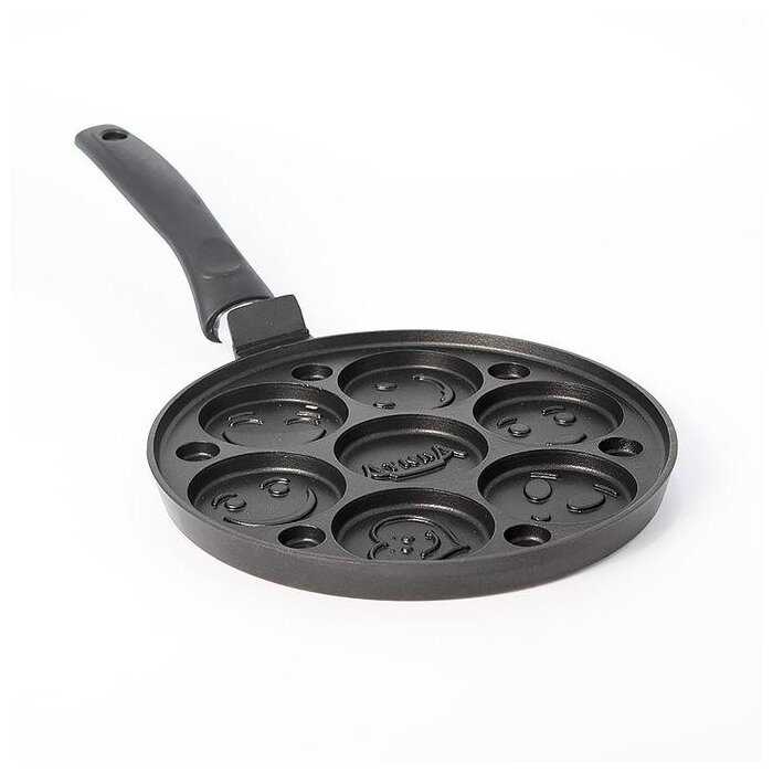 Сковорода пришла вовремя! Отличная сковорода, использовала без масла. Смайлы вышли чёткие. Сами панкейки воздушные и вкусные!