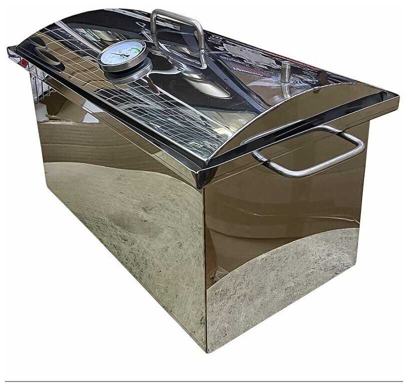 - + Корпус каптильни выполнен из пищевой нержавейки толщиной 2мм, которая отполирована как зеркало. Объём 30 литров. Есть паддон для сбора жира. Двухъярусная решётка для размещения продуктов. Каптить можно горячим или холодным дымом. Для холодного копчения есть штуцер. Генератор холодного дыма в комплект не входит, приобретается отдельно. Приготавливать продукты можно на открытом огне, газовой плите и варочной панели на кухне с отводом дыма через селиконовую трубку. Есть гидрозатвор. Крышка картильни покатая, для сбора капель, которые конденсируют в поддон. Есть термометр и удобные ручки на крышке и кубе.