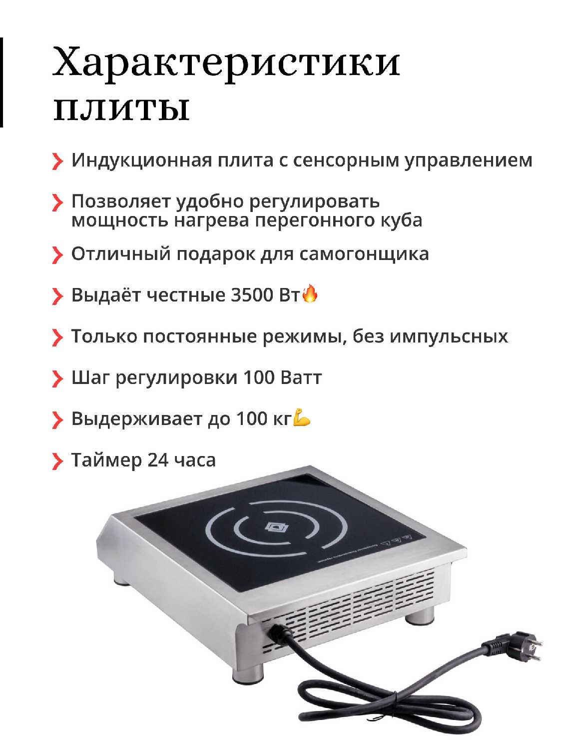 Характеристи АЛКОЗВЕРЬ Плита индукционная (Куболитр)
