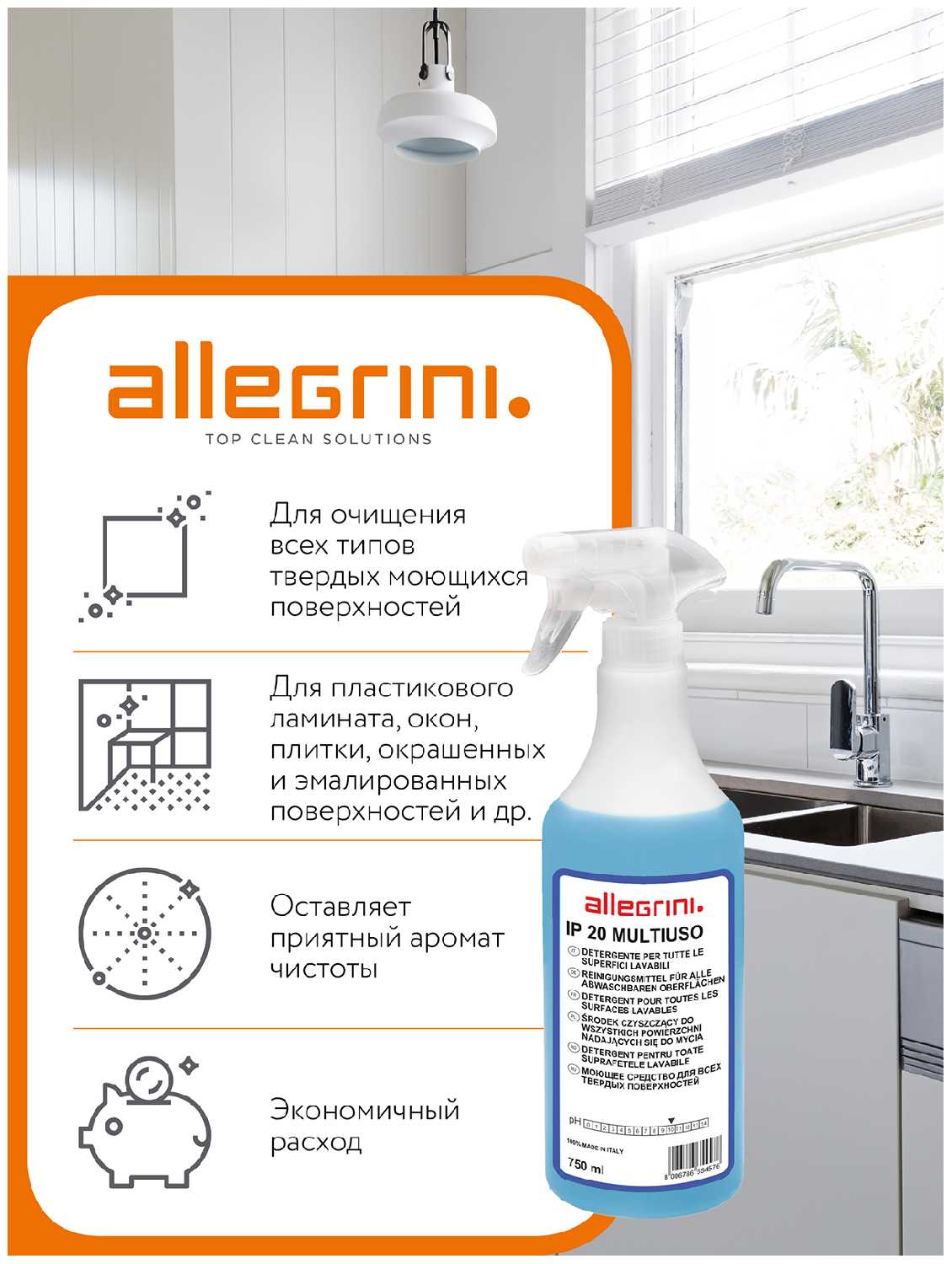 Отзывы о Универсальное средство для уборки твердых поверхностей с эффектом "Антипыль", "IP 20 Multiuso", ALLEGRINI, 750мл