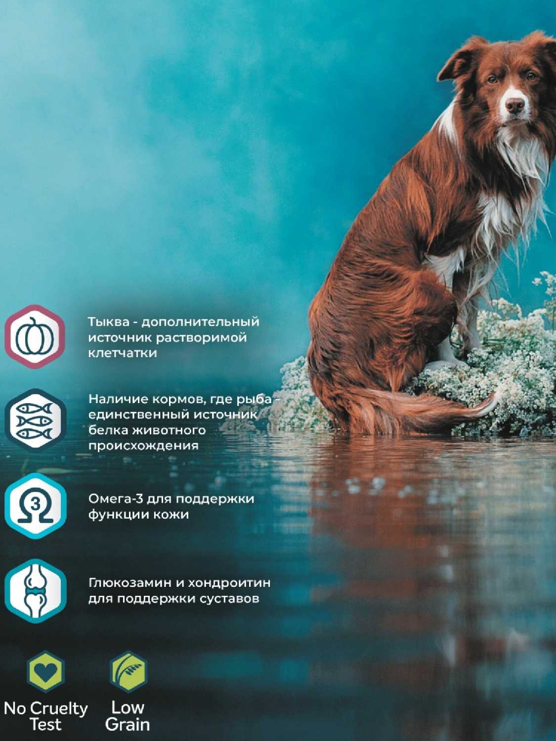 - + Подходит для моей собаки ( нужен корм беззерновой с рыбой, без мяса)