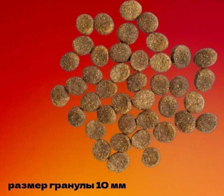 Этот сухой корм для собак средних и крупных пород, размер гранул соответствует весовой категории.