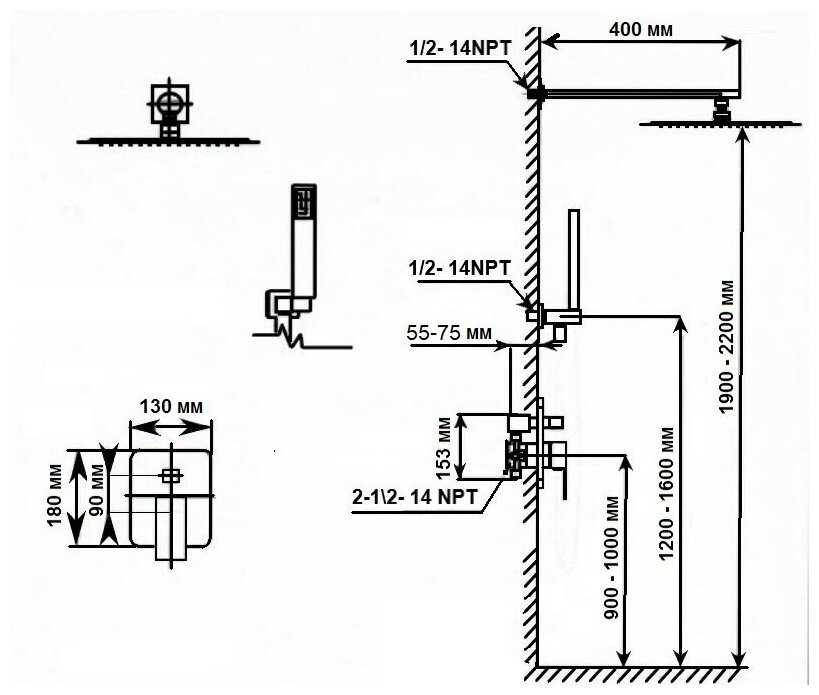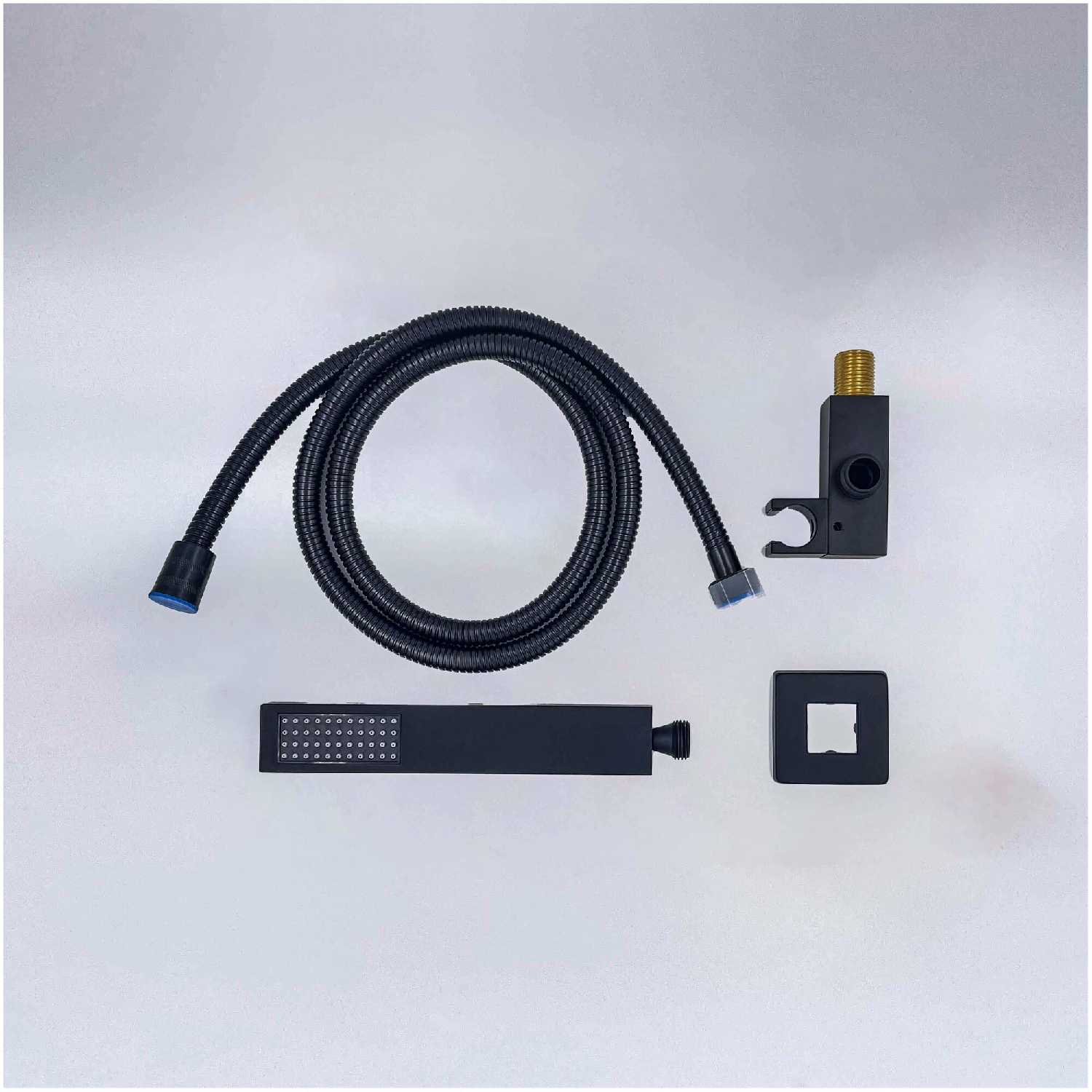 Комплектация : | верхний душ, держатель лейки, кронштейн для верхнего душа, ручной душ, смеситель, шланг |