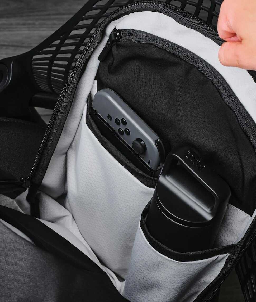 - MacBook Pro 14 или аналог помещается идеально без чехла, с бутылкой воды, контейнером обеда, органайзером.