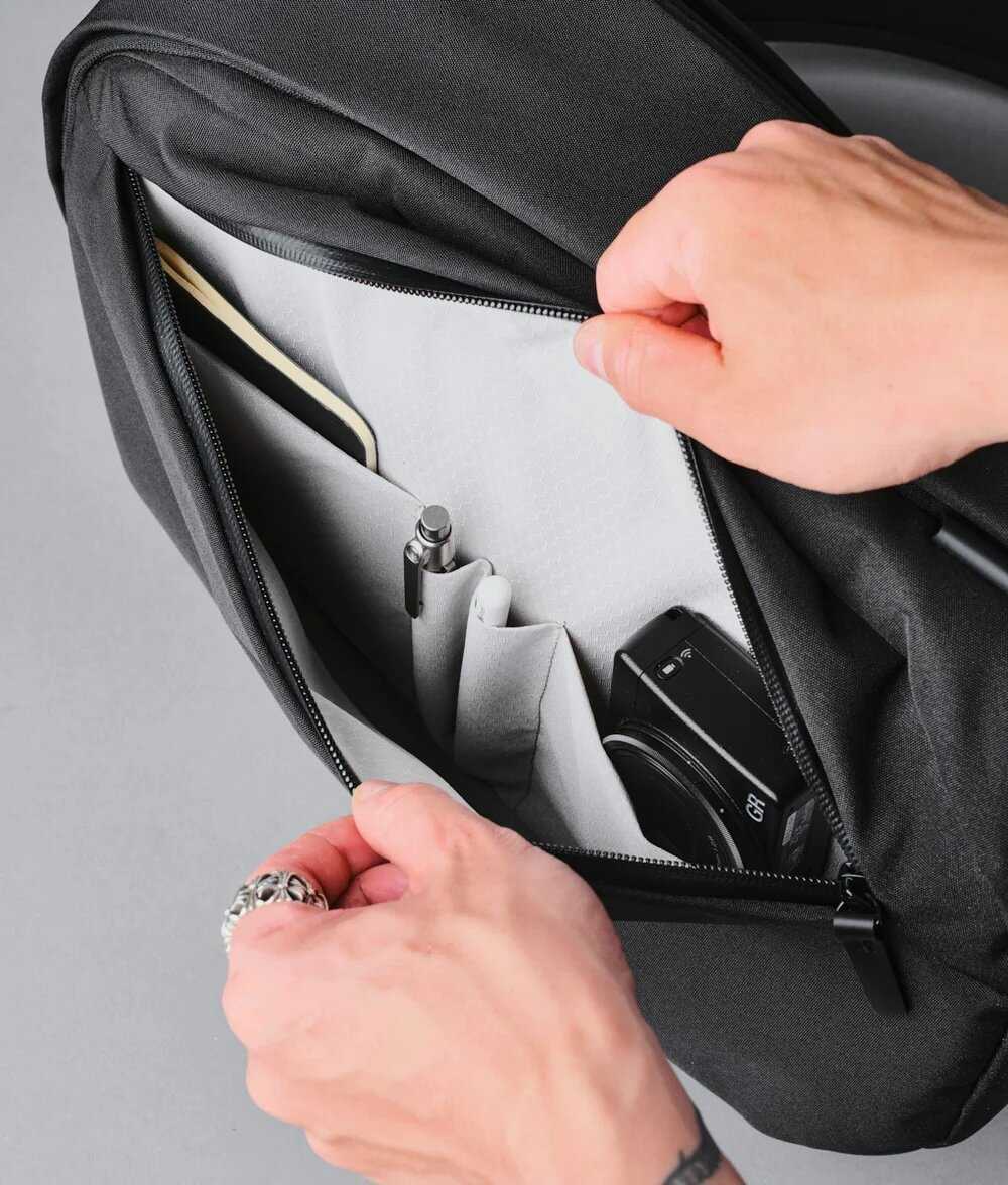 - Компактная вместимость под 14-дюймовый ноутбук и EDC: