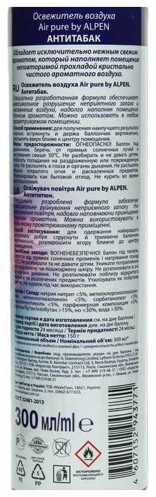 Характеристи Alpen аэрозоль Антитабак 300 мл