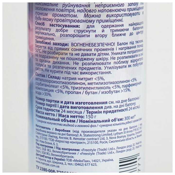 | Эффект : | антитабачный, нейтрализация запаха, от запаха домашних животных, устранение неприятных запахов |