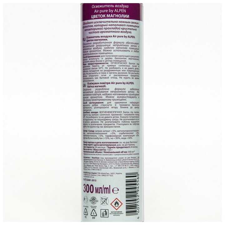 Характеристи Alpen аэрозоль Цветок магнолии 300 мл