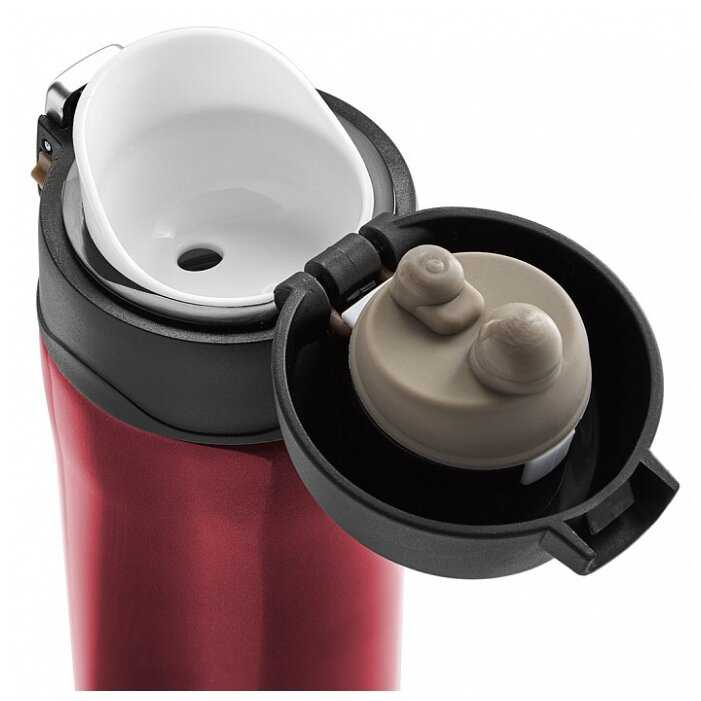 Особенности : | вакуумный, кнопка-клапан, непроливайка, носик для питья, отверстие для питья в крышке, силиконовая вставка на корпусе |