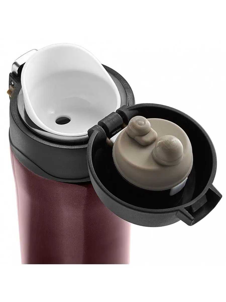 | Особенности : | вакуумный, кнопка-клапан, непроливайка, носик для питья, отверстие для питья в крышке, силиконовая вставка на корпусе |