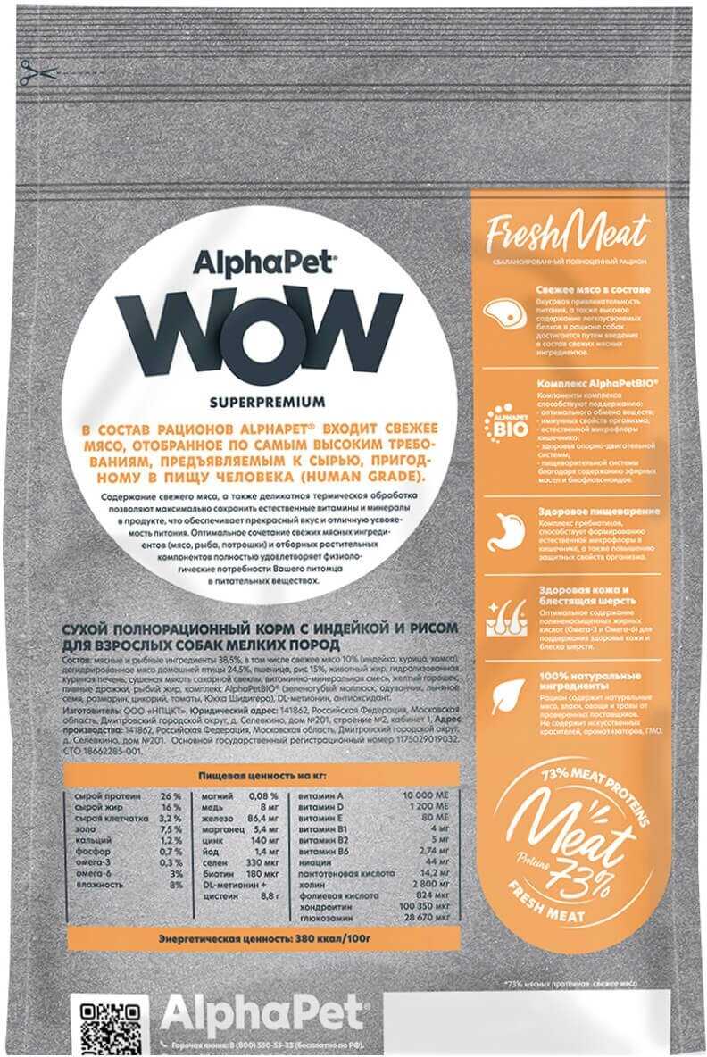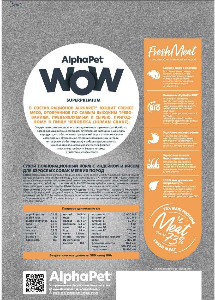 Обзор AlphaPet WOW Superpremium для взрослых собак мелких пород с чувствительным пищеварением - мнение пользователей*: