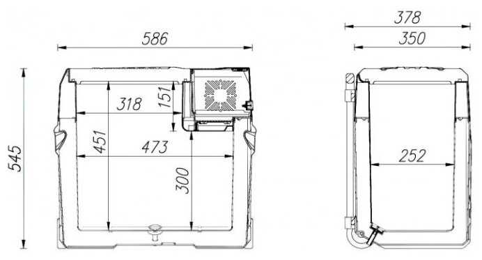 - + Морозит на отлично. Не сильно сажает аккумулятор. Перемещать на встроенных колесах очень удобно. Расположение компрессора вверху позволяет удобнее обеспечивать теплоотвод в плотно загруженной машине (необходимо оставлять свободное пространство около вентиляционных решеток, а это удобнее делать когда они находятся сверху).