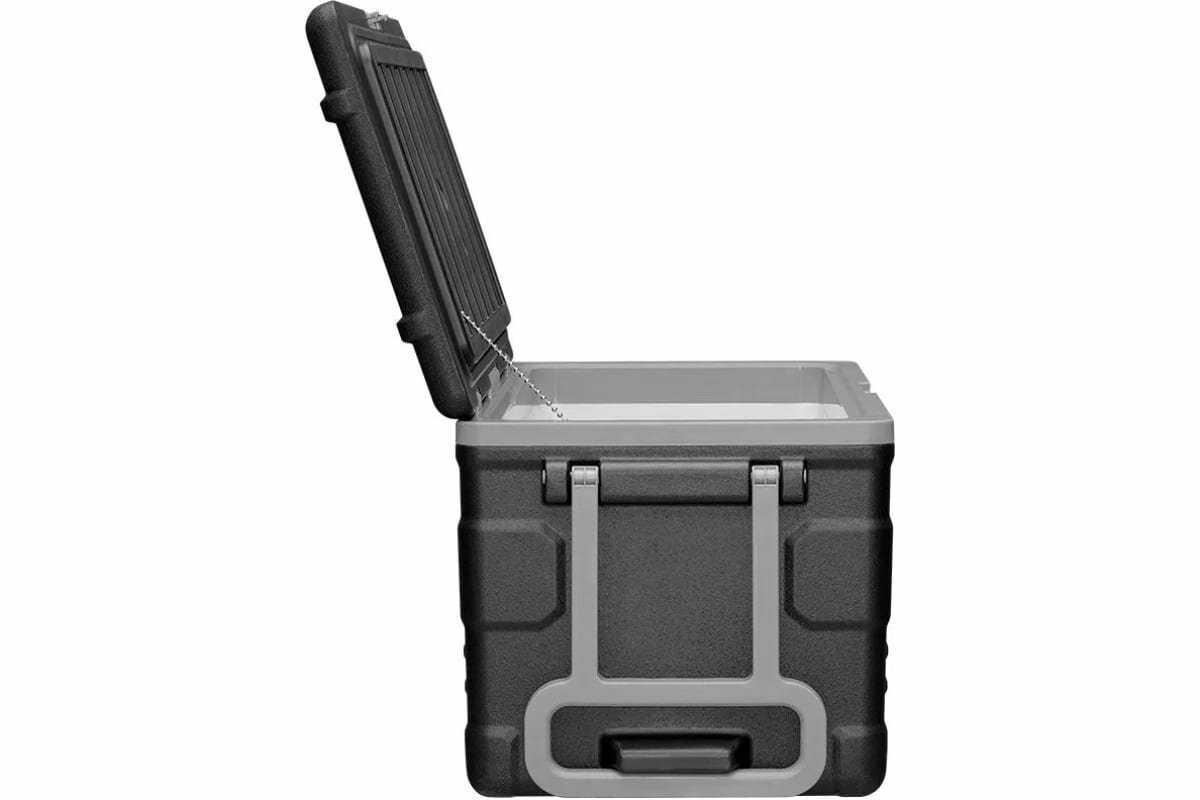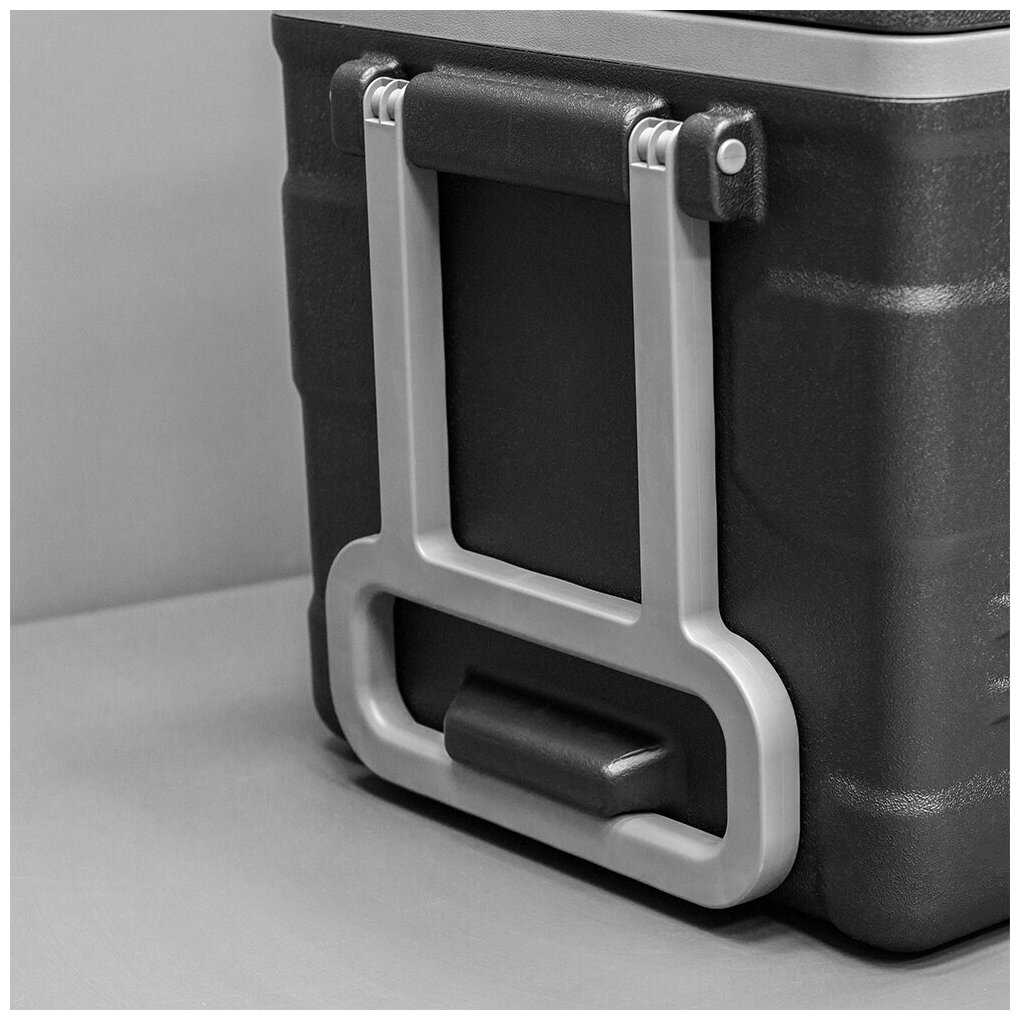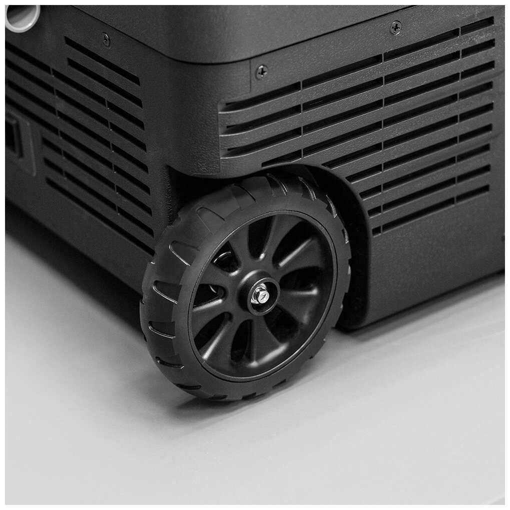 - + есть ручки для перевозки, удобно катить, колесики слабоваты, не фиксируются не блокируются. холодильник нужно фиксировать в салоне-багажнике чтобы не катался при поворотах авто на дороге.