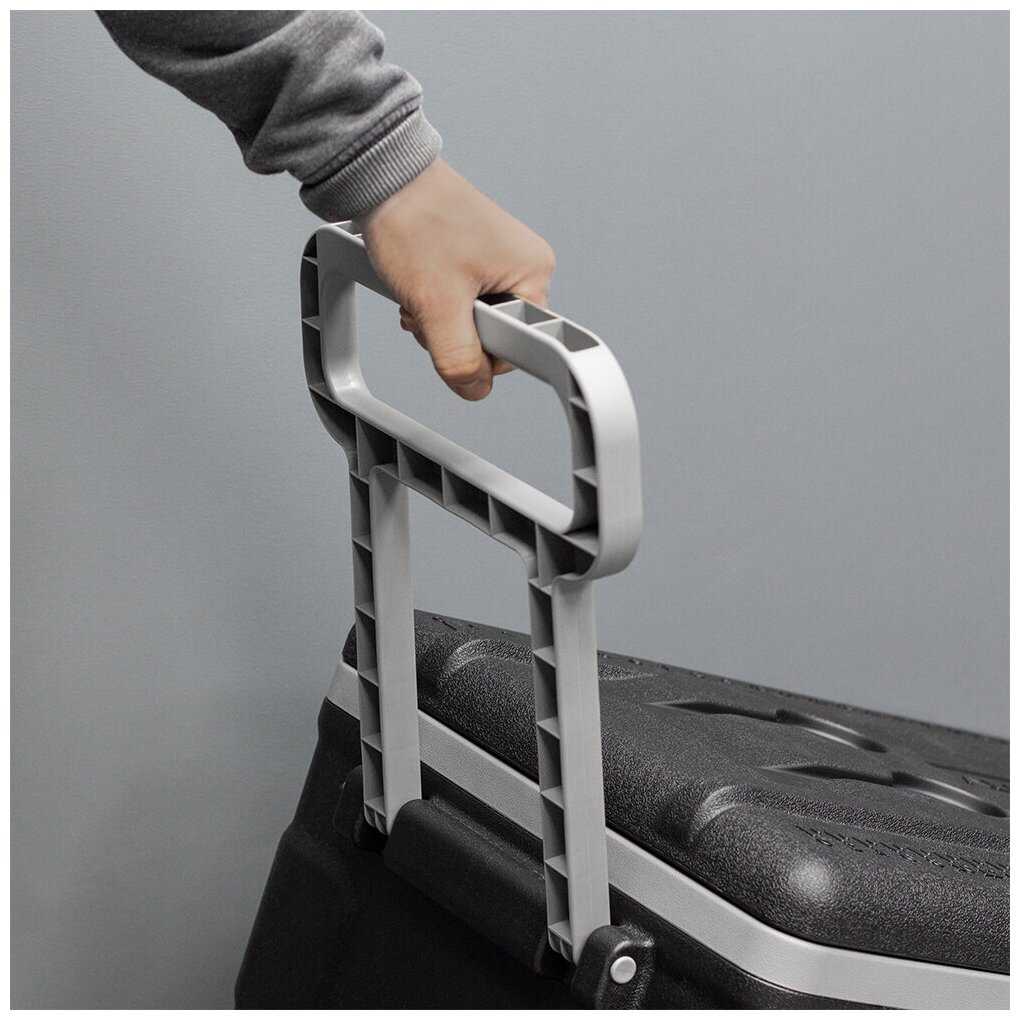 есть колеса и ручки для переноски, но надо понимать , что из багажника такой вес, при полном заполнении вытащить в одно лицо будет сильно проблематично xD - - пожалуй только один - нет возможности закрыть крышку на замок