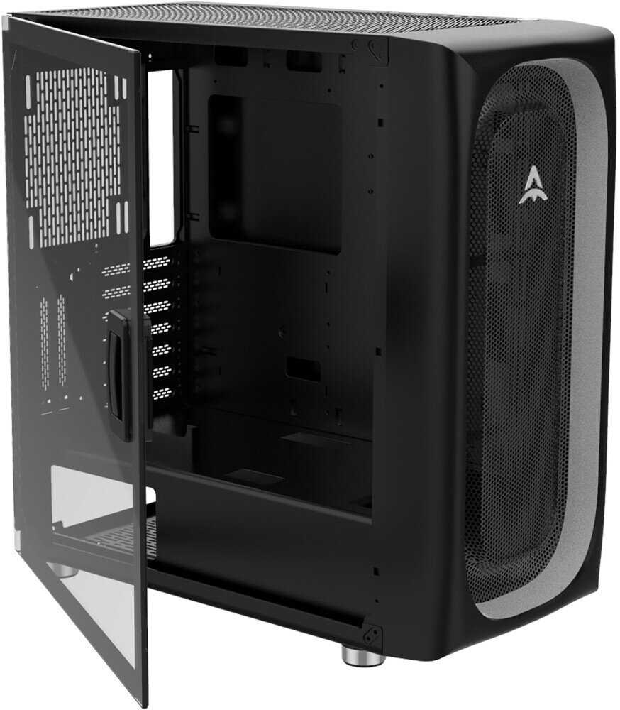 - + Хорошая толщина металла делает корпус крепким и надежным. Боковая панель из закаленного стекла легко открывается простым нажатием на удобную ручку, что упрощает доступ к компонентам. Подсветка управляется через ARGB, включая переднюю панель, которая выглядит стильно. В комплекте идут две большие вентиляторы для передней части, они тоже с ARGB и подключаются к Molex. Есть специальные подкладки под блок питания и у крышки для жестких дисков, что добавляет удобства при сборке.