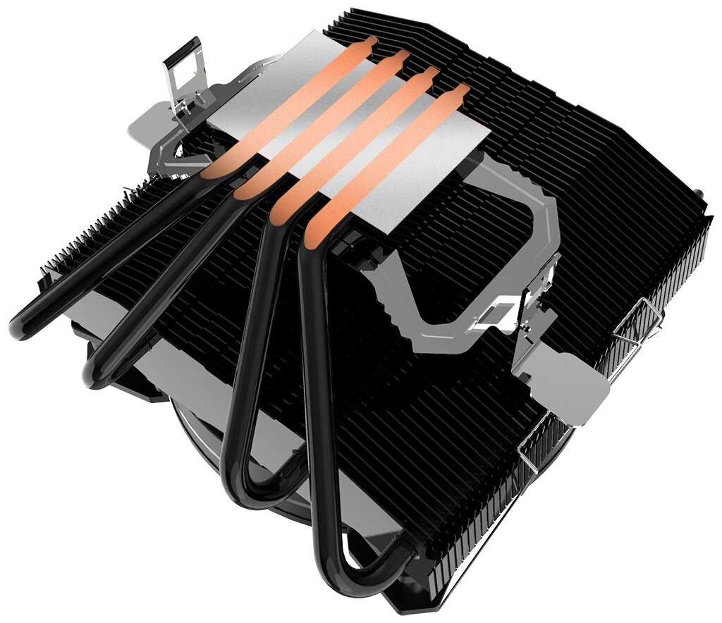 - + Большой тихий авторегулируемый кулер. Ровная пятка, 4 теплотрубки. Большой радиатор. Всё в черном цвете.