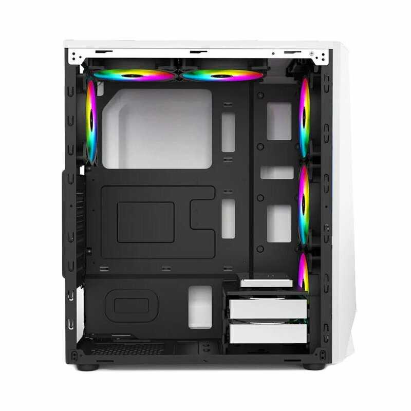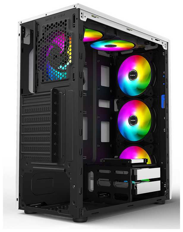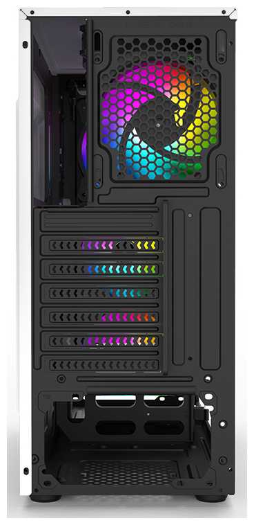 RGB-подсветка и визуальные особенности:Адресная RGB-лента на передней панели с отдельным контроллером — главный эстетический козырь. Управление осуществляется через кнопку Reset, которая теряет функцию перезагрузки (альтернатива — переключение режимов подсветки). Однако синхронизация с другими компонентами невозможна из-за проприетарного чипа. Пользователи отмечают «тусклость» подсветки из-за экрана-отражателя: для яркого эффекта приходится докупать RGB-вентиляторы. Белый цвет корпуса ценится за стильный внешний вид, но внутренняя черная окраска создает контраст, заметный через стекло.
