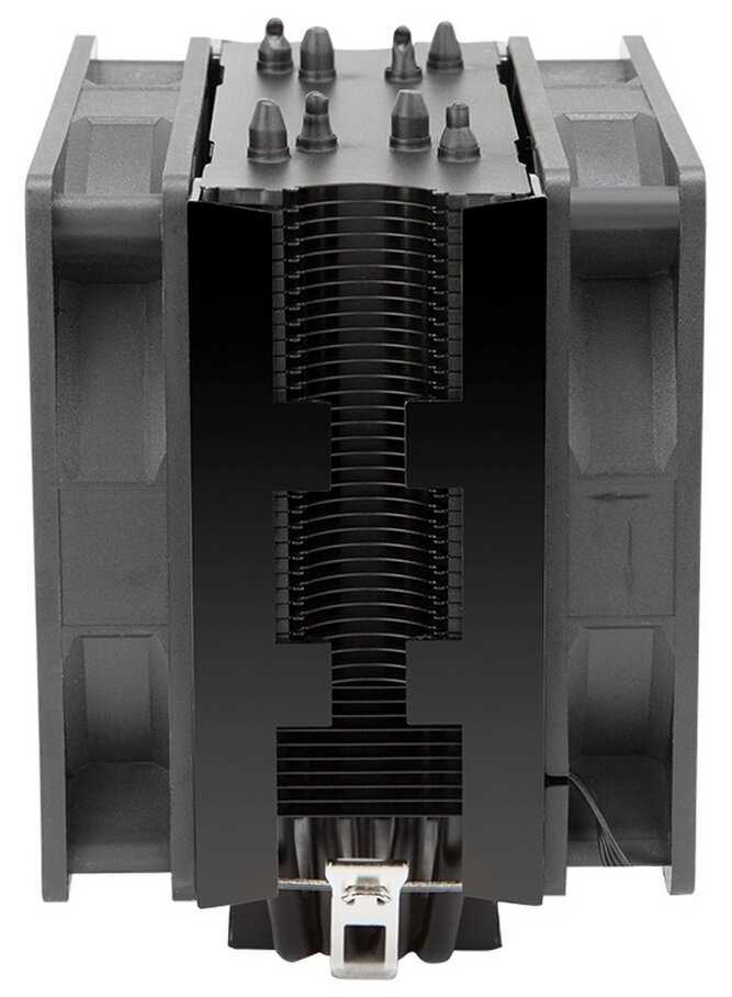 Стоит 2 вентилятора 120х120 4pin, через переходник работает отлично, обороты регулируются. Не очень шумный, не смотря на свои габариты. Один вентилятор стоит на вдув(который смотрит лопастями во внутрь на радиатор), второй стоит на выдув(который смотрит лопастями наружу от радиатора). В паре с хорошей термопастой, проблем с отводом тепла от cpu не возникнет.
