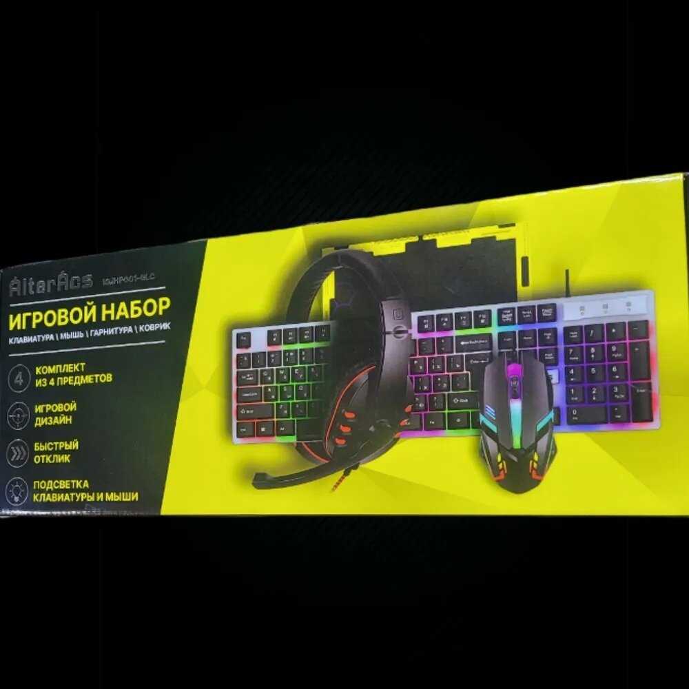 - состав комплекта: клавиатура + мышь + гарнитура + коврик