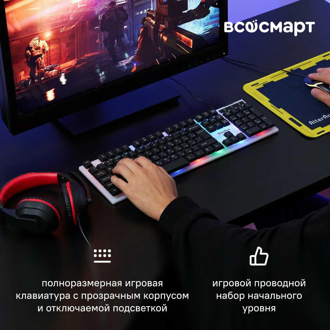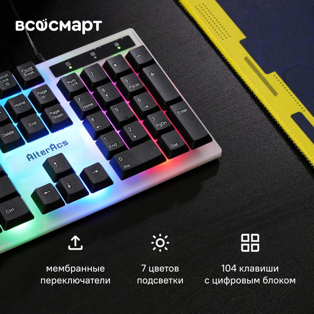 - Статичная подсветка клавиш (белый свет) улучшает видимость в темноте, но не поддерживает RGB-эффекты.