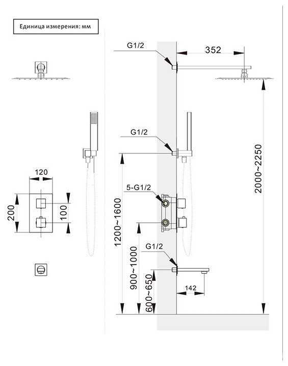 - регулируемый верхний душ