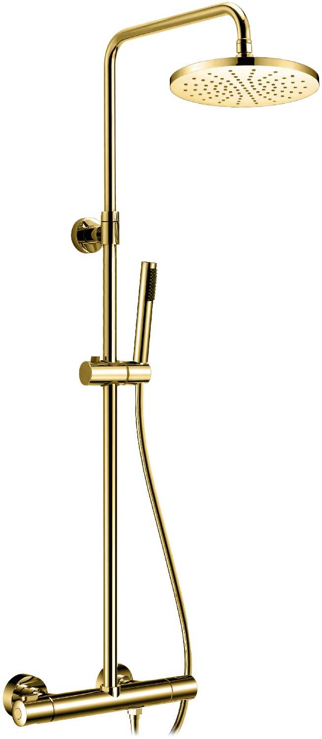 | @Комплектация : | термостатический смеситель настенного монтажа, телескопическая штанга, ручной душ, гибкий металлический шланг, эксцентрики, чаши декоративные |