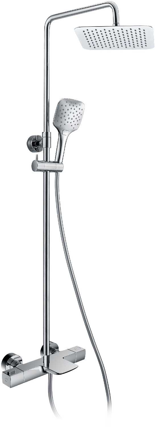 | @Комплектация : | термостатический смеситель настенного монтажа, телескопическая штанга, ручной душ, гибкий полимерный шланг, регулируемый по высоте верхний душ, эксцентрики, чаши декоративные |