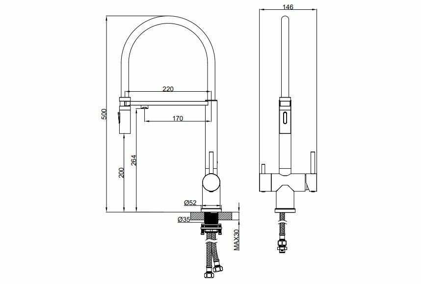 - + Хороший смеситель. отдельный кран на питьевую воду . Краны и лейка без люфтов. Шланги в комплекте качественные