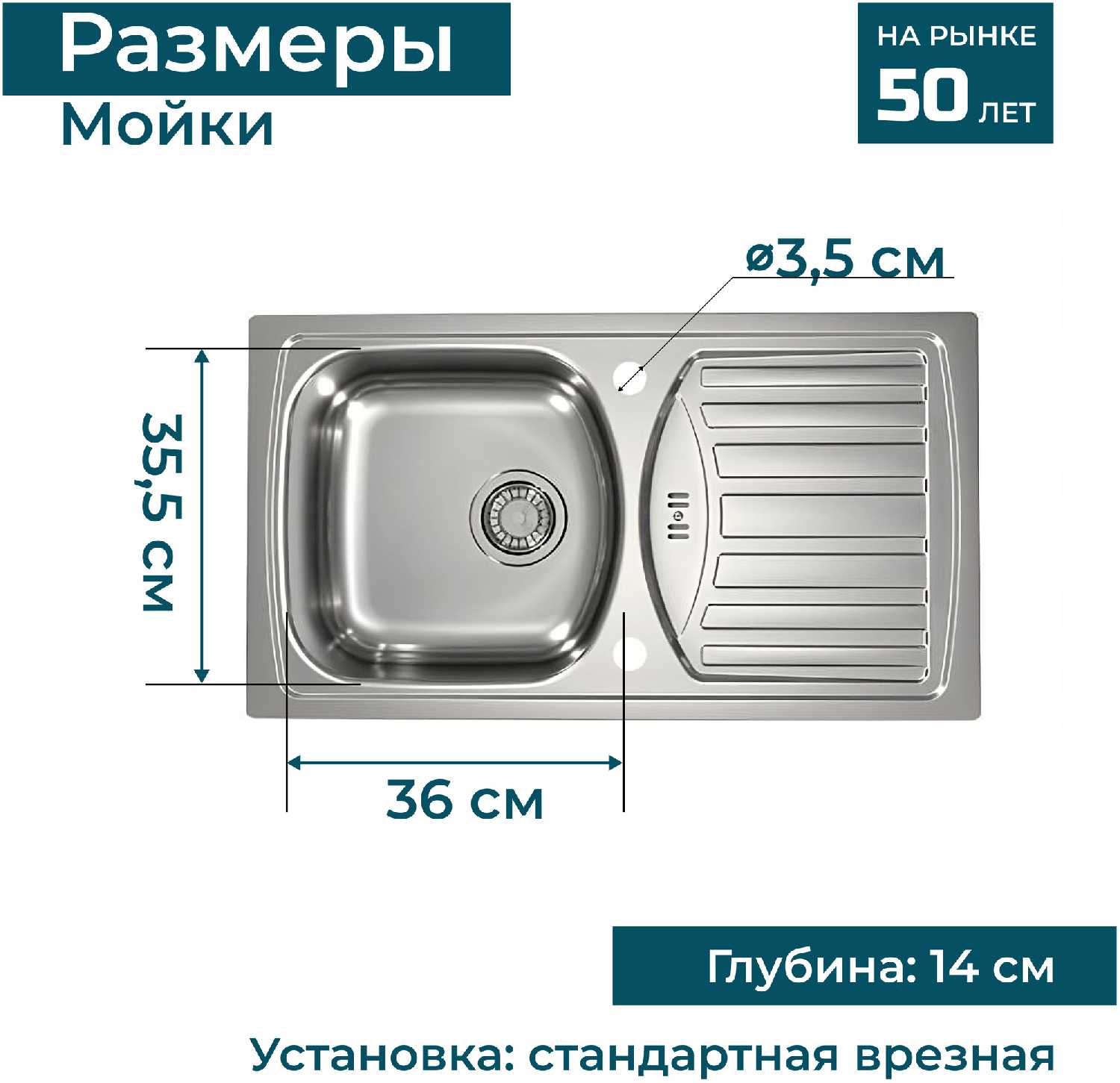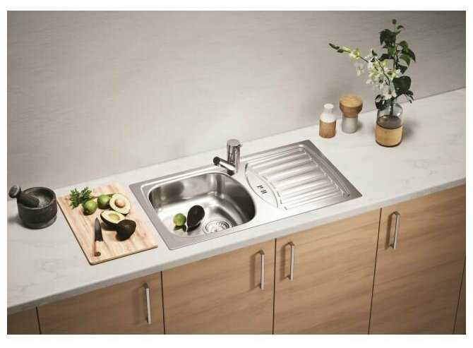 - + Хорошая форма и глубина моечной чаши, толщина 1 мм