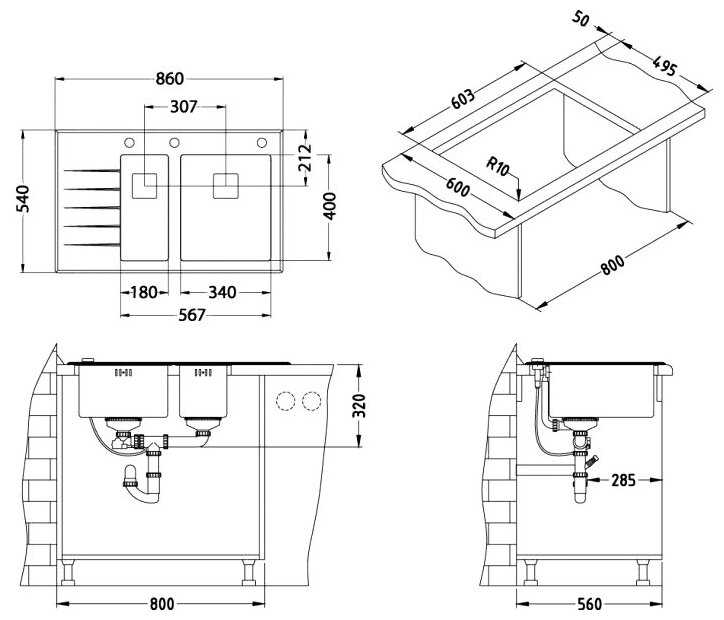Характеристи ALVEUS Crystalix 20 правая, 54х86см, нержавеющая сталь