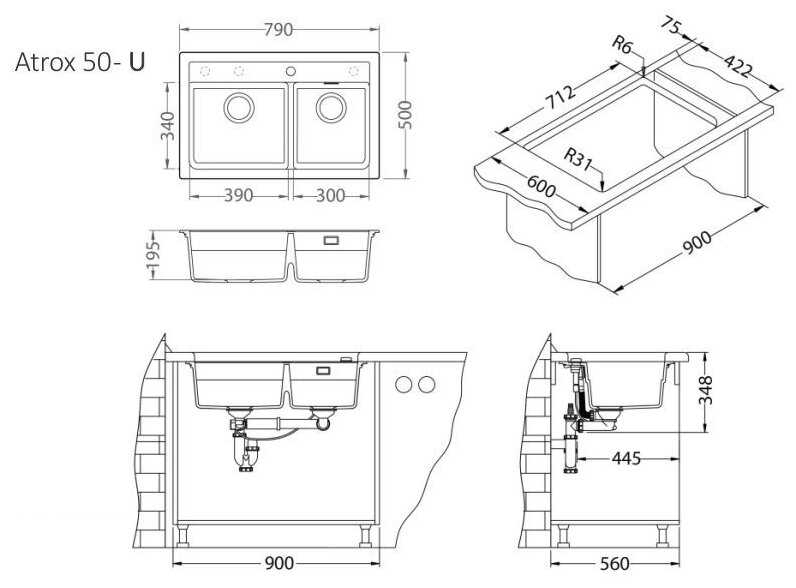 Отзывы о Мойка ALVEUS GRANITAL ATROX 50 BEIGE - G55 в комплекте с сифоном