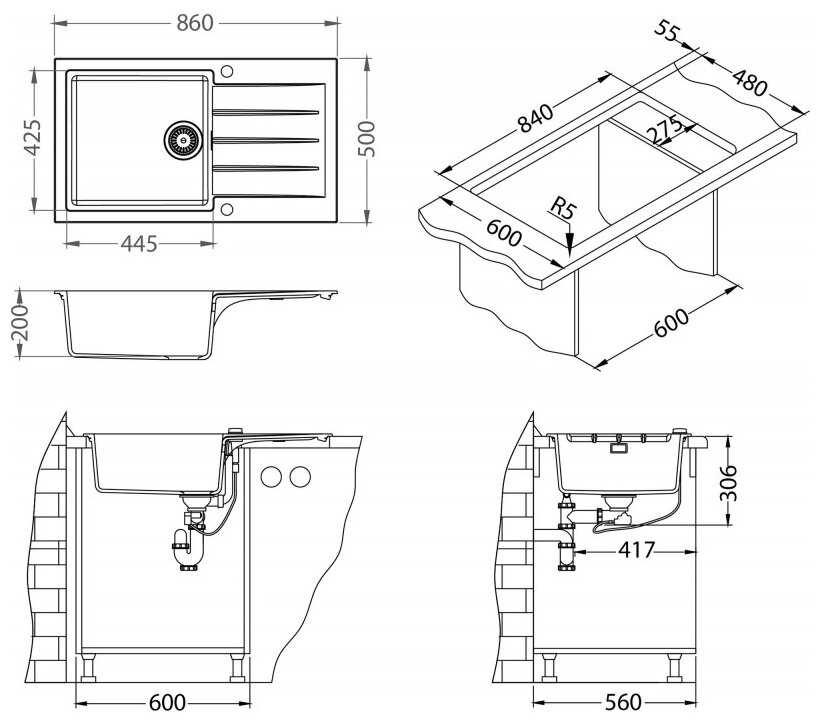Отзывы о Мойка ALVEUS GRANITAL CADIT 40 BEIGE - G55 860 X 500 1X в комплекте с сифоном