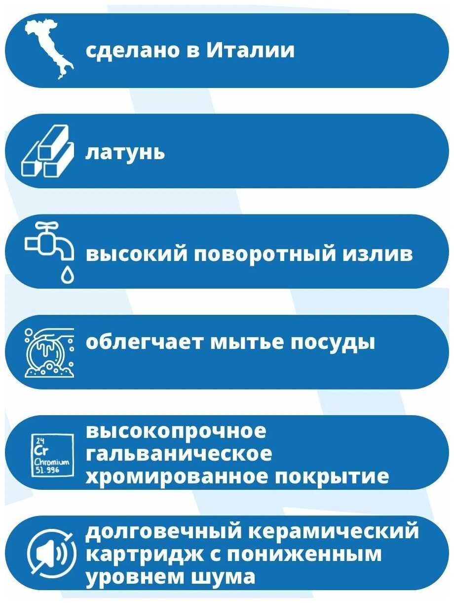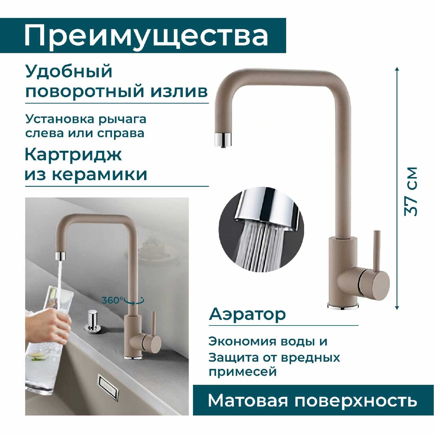 аэратор, встроенный фильтр, поворотный излив, система быстрого монтажа
