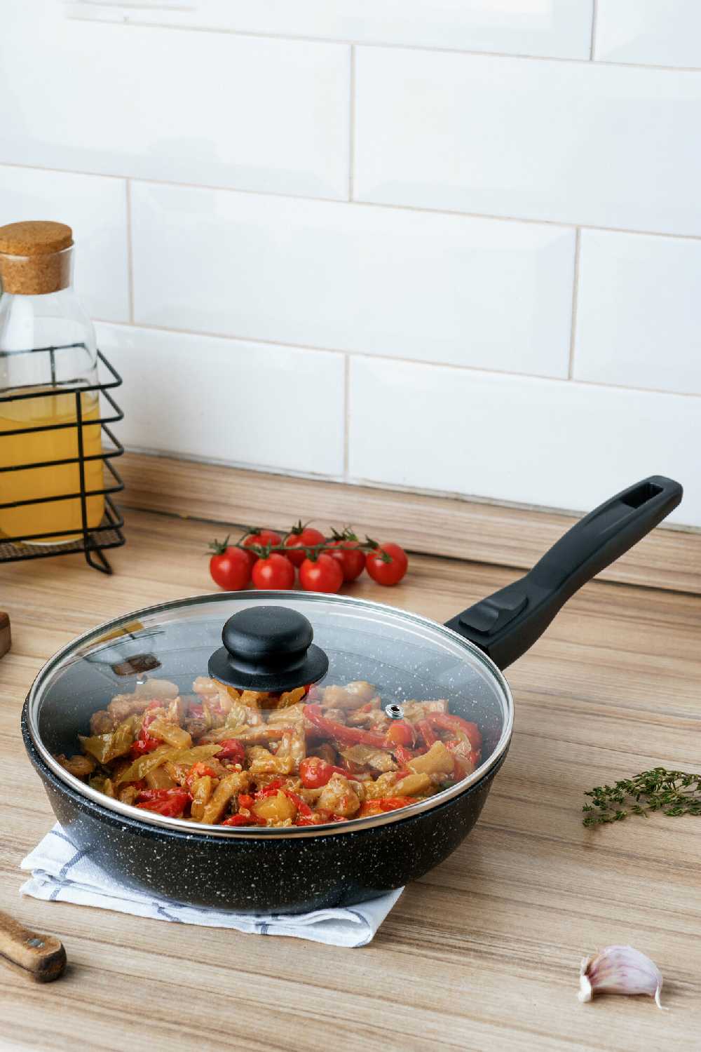 Сковорода идеальна для объемных блюд благодаря глубине (вмещает до 3.5 л) и равномерному нагреву. Пользователи успешно готовят рагу, тушеную курицу целиком, купаты, пельмени и макароны. Антипригарные свойства в первые месяцы позволяют жарить с минимальным маслом, но для деликатных продуктов (яиц, блинов) после износа покрытия она менее пригодна. -