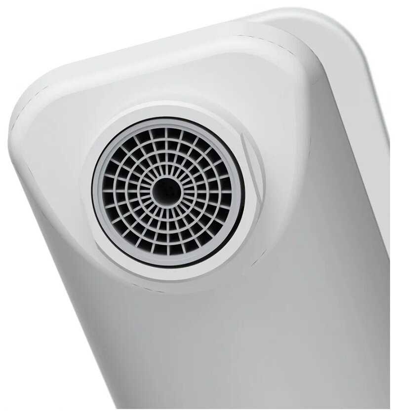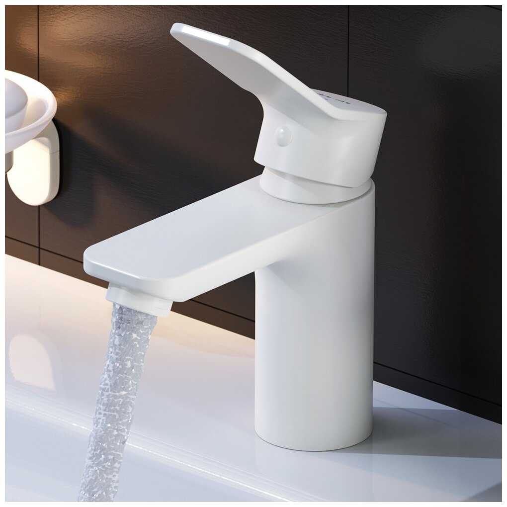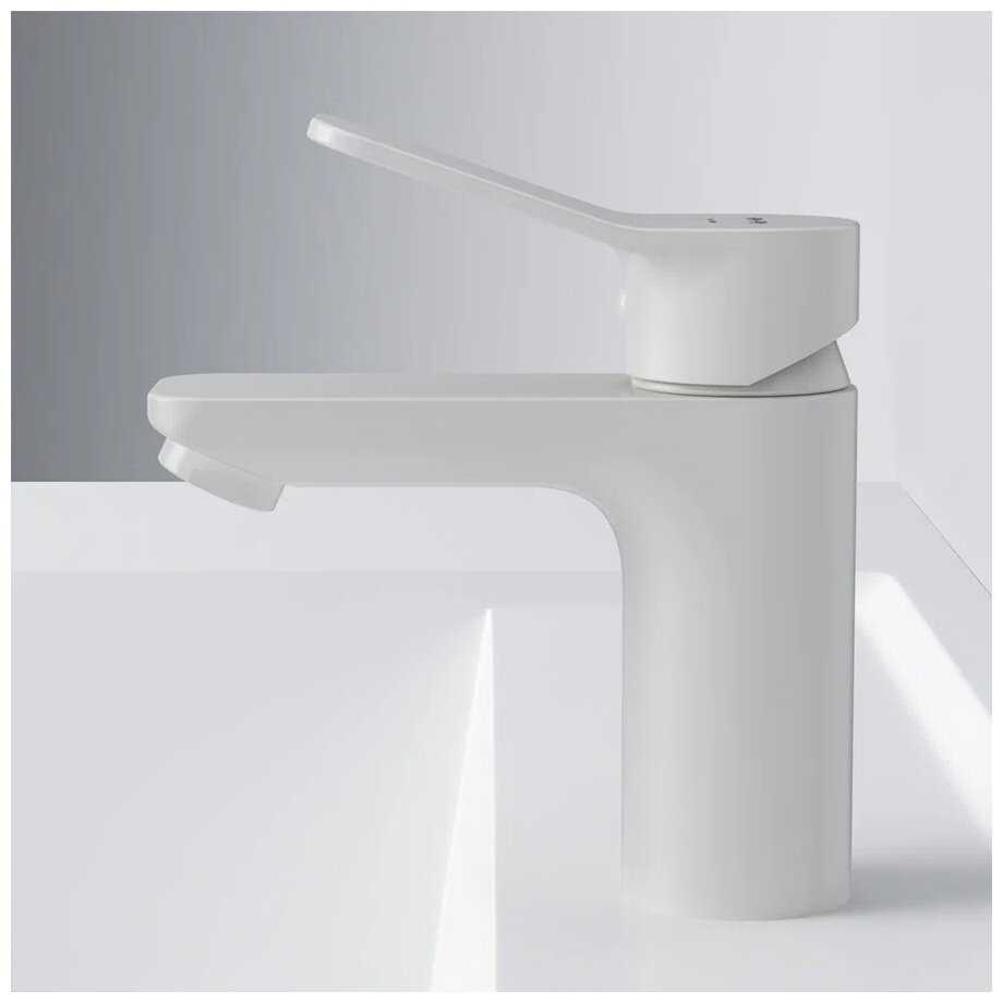 Необычный и в то же время приятный белый цвет. Стыков в конструкции по минимуму, что значительно упрощает уход за смесителем. Включается вода мягко, рывков и брызг в разные стороны нет.